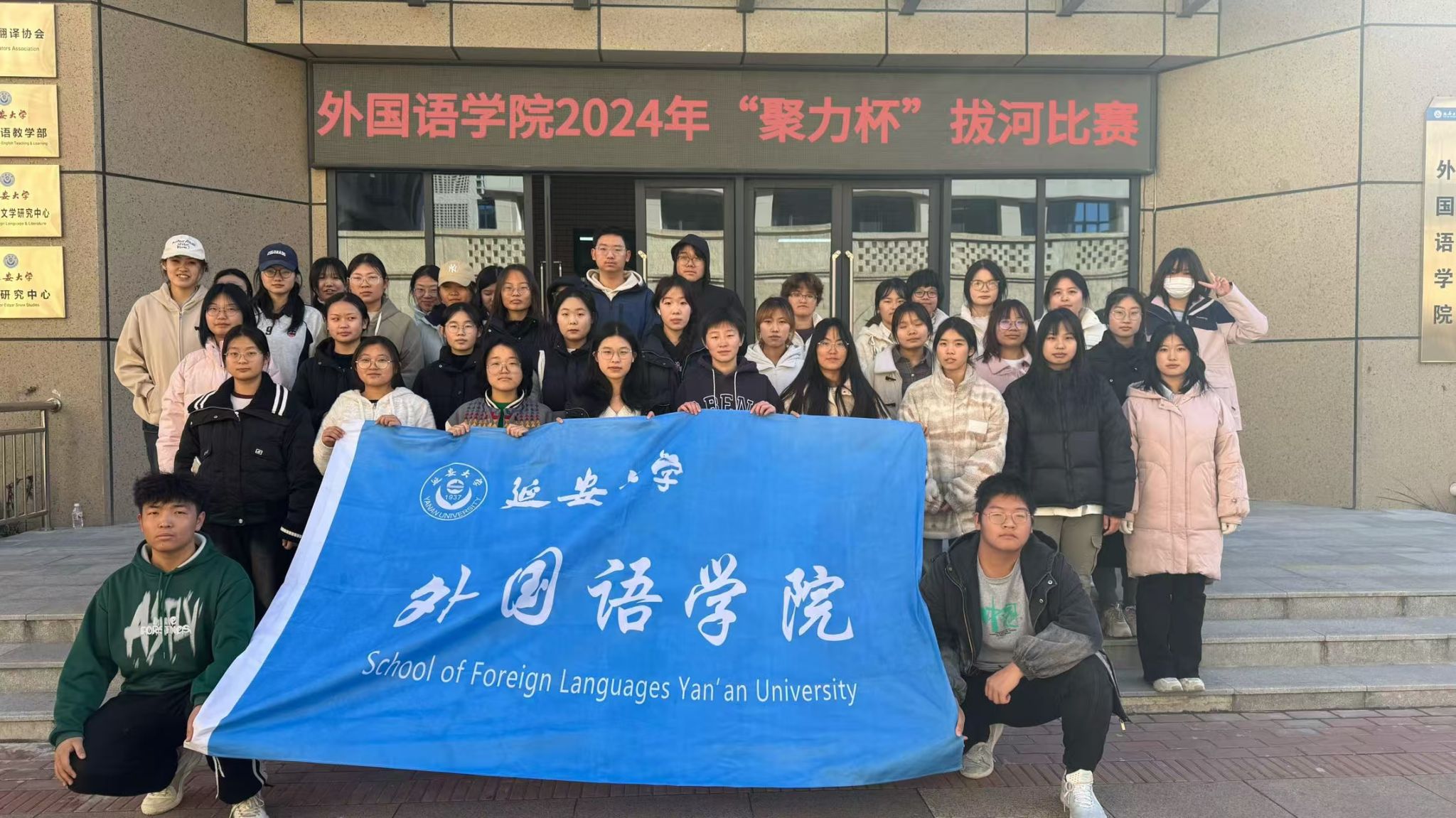 于外语楼前举办院级“聚力杯”拔河比赛。参赛队伍由2023级,2024级共10个班,200余名同学组成。本次比赛由胡星宇同学主持。