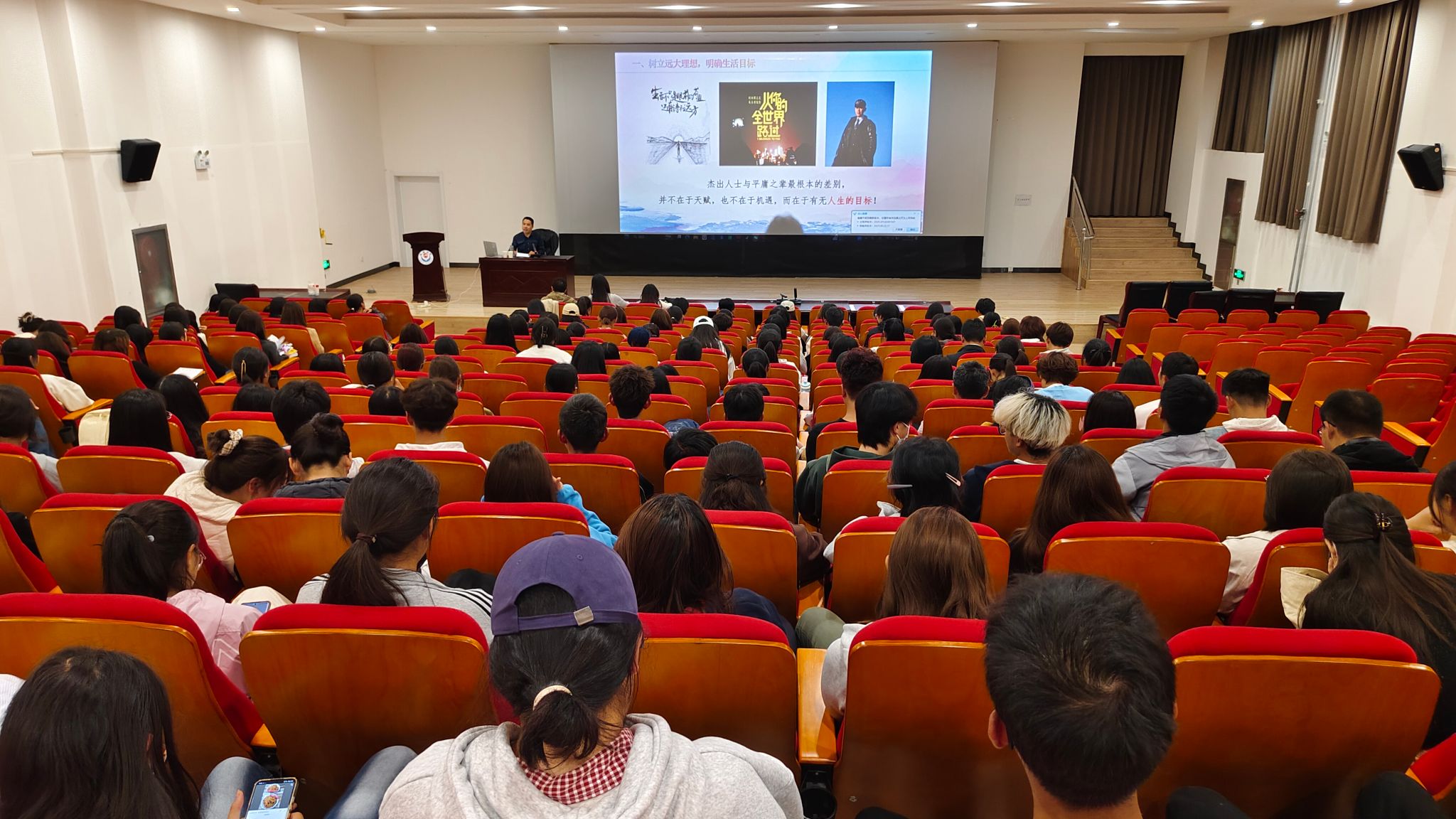 当晚,在红色影院,对外交流处处长乔剑老师与200余名新同学对话专题讲座《不负青春韶华,过好大学生活》。讲座从树立远大理想、坚持发奋学习、锤炼自信品格、追求上进卓越、守护身心健康等五个方面,为新生大学生活指明了方向,激励大家“在青春的赛道上奋力奔跑”。