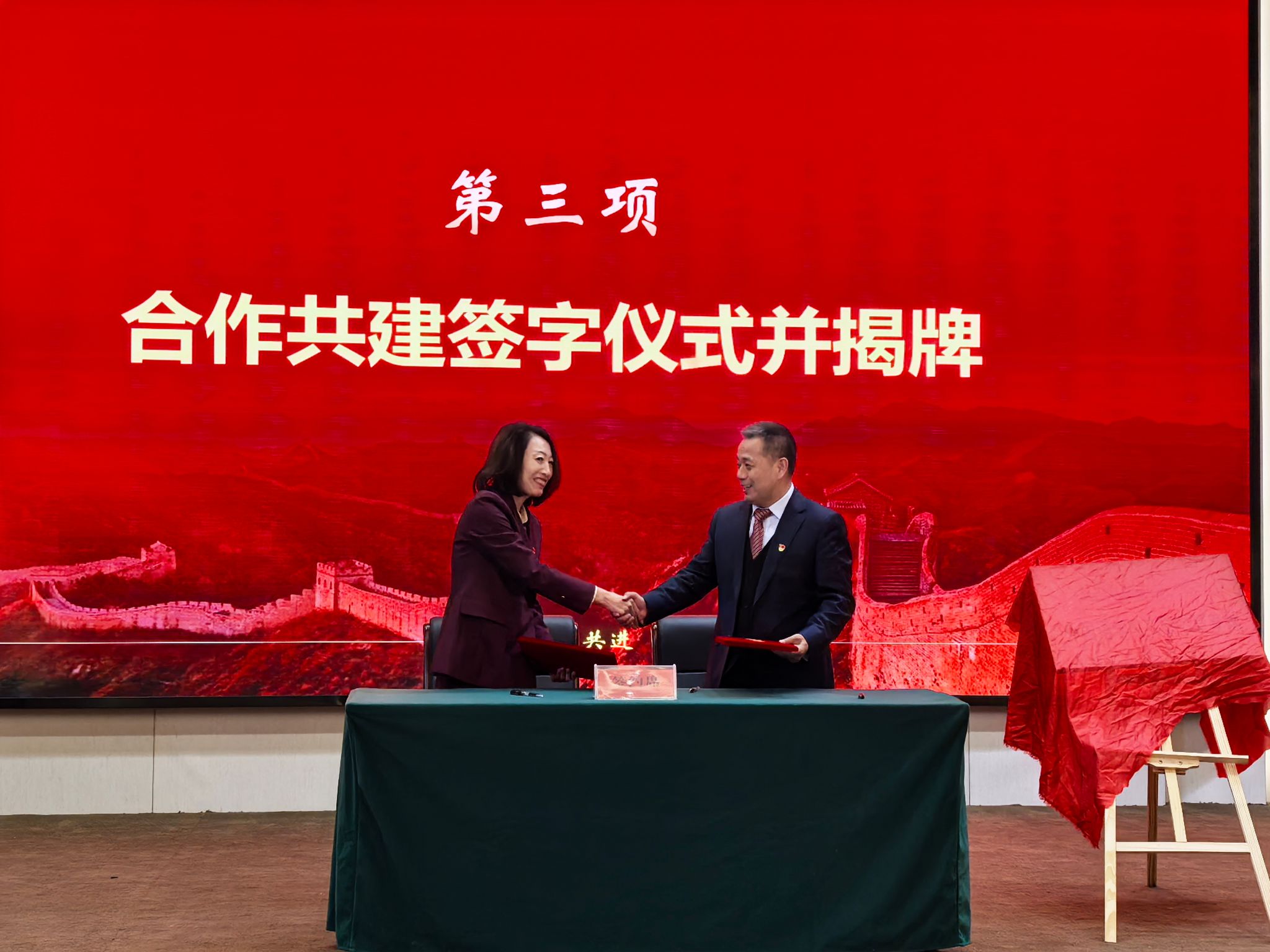 学院党委书记梁艳和红星园创始人、董事长马逸飞代表双方签订了合作共建协议,并为教育实践基地揭牌。梁艳为马逸飞颁发了“91在线
