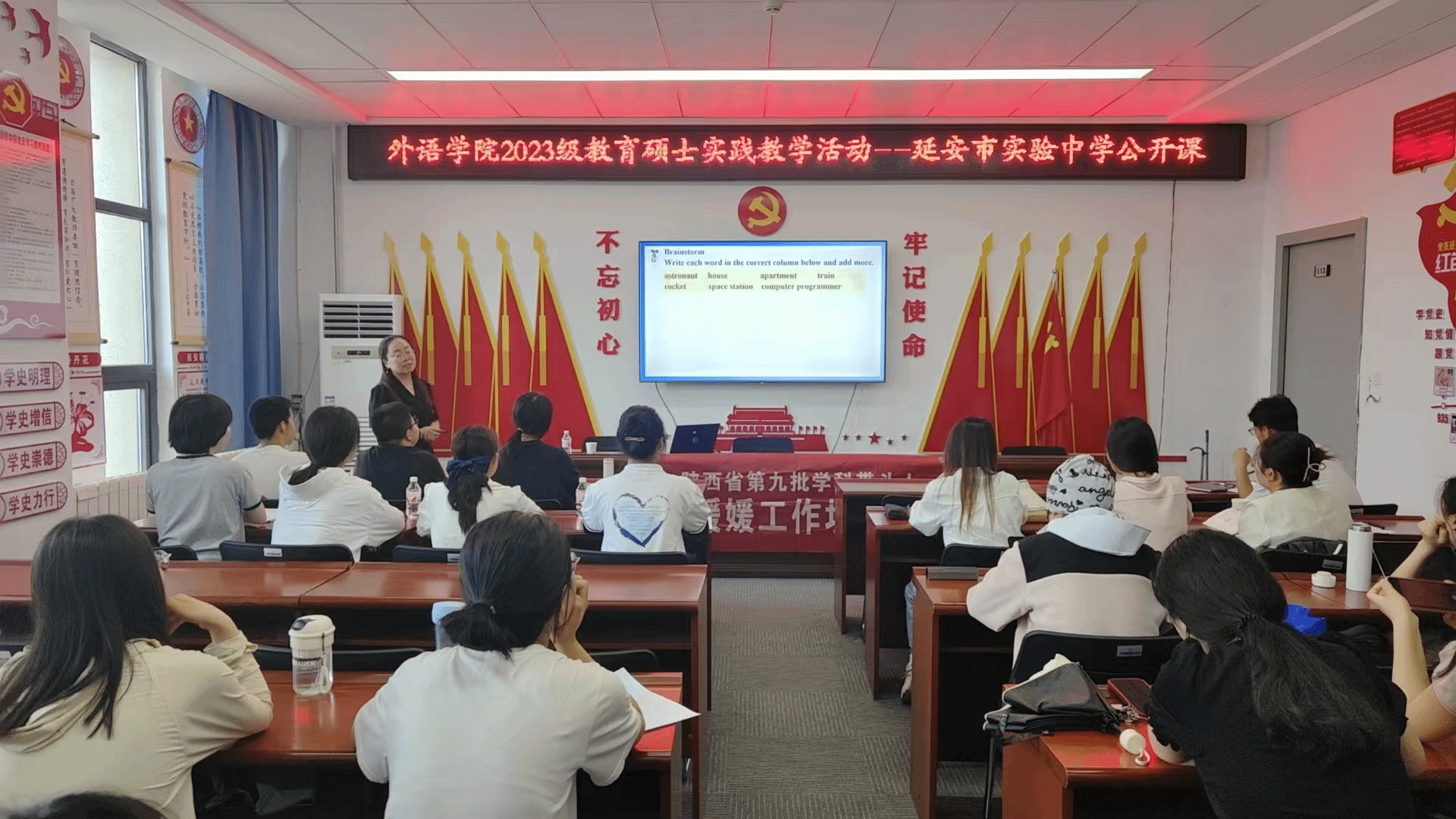 6月21日下午,2023级教育硕士研究生以线上线下相结合的方式参加了延安职业技术学院附属中学教学研讨会。学生们首先观摩了初三年级朱丽娜老师的写作课,整个课堂设计由浅入深、循序渐进,师生互动频繁且高效,有效实现了教学目标。观摩课后,学生们集体参加了教研组评课活动,英语教研组的老师们还对91在线