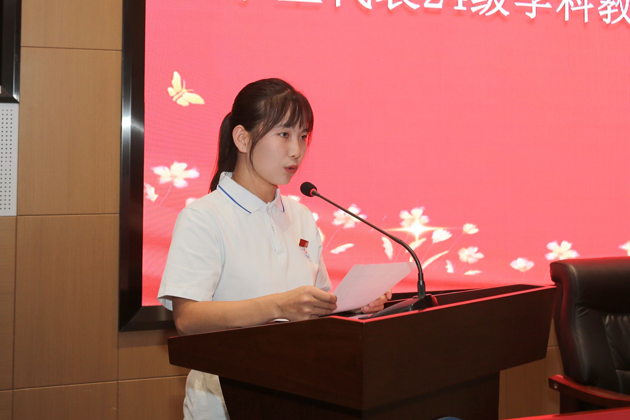 2024级学科教学(英语)研究生张佳宁代表获奖学生发言,表达了对老师们辛勤培育的感激之情,并表示将不负期望,勤奋学习,以实际行动回报师恩、贡献社会。