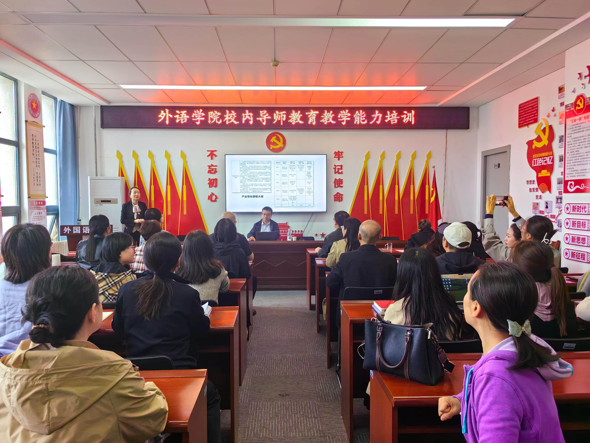 9月19日下午,外语学院组织校内导师教育教学能力专题培训,邀请西安外国语大学王嘉铭教授作报告,学院全体校内导师、师范专业骨干教师及部分青年教师参会,雷琨副院长主持。 王教授以“新时代外语师范教育的认知转向与教学能力重构”为题,从导师认知与职责定位、指导能力与方法技巧、政策与资源熟悉等三方面进行了分享。 参会教师围绕师范生素养培养等问题交流。雷琨副院长总结称,后续将持续开展导师能力提升活动,推动专业实践教学大纲落地,助力高素质外语教育人才培养。