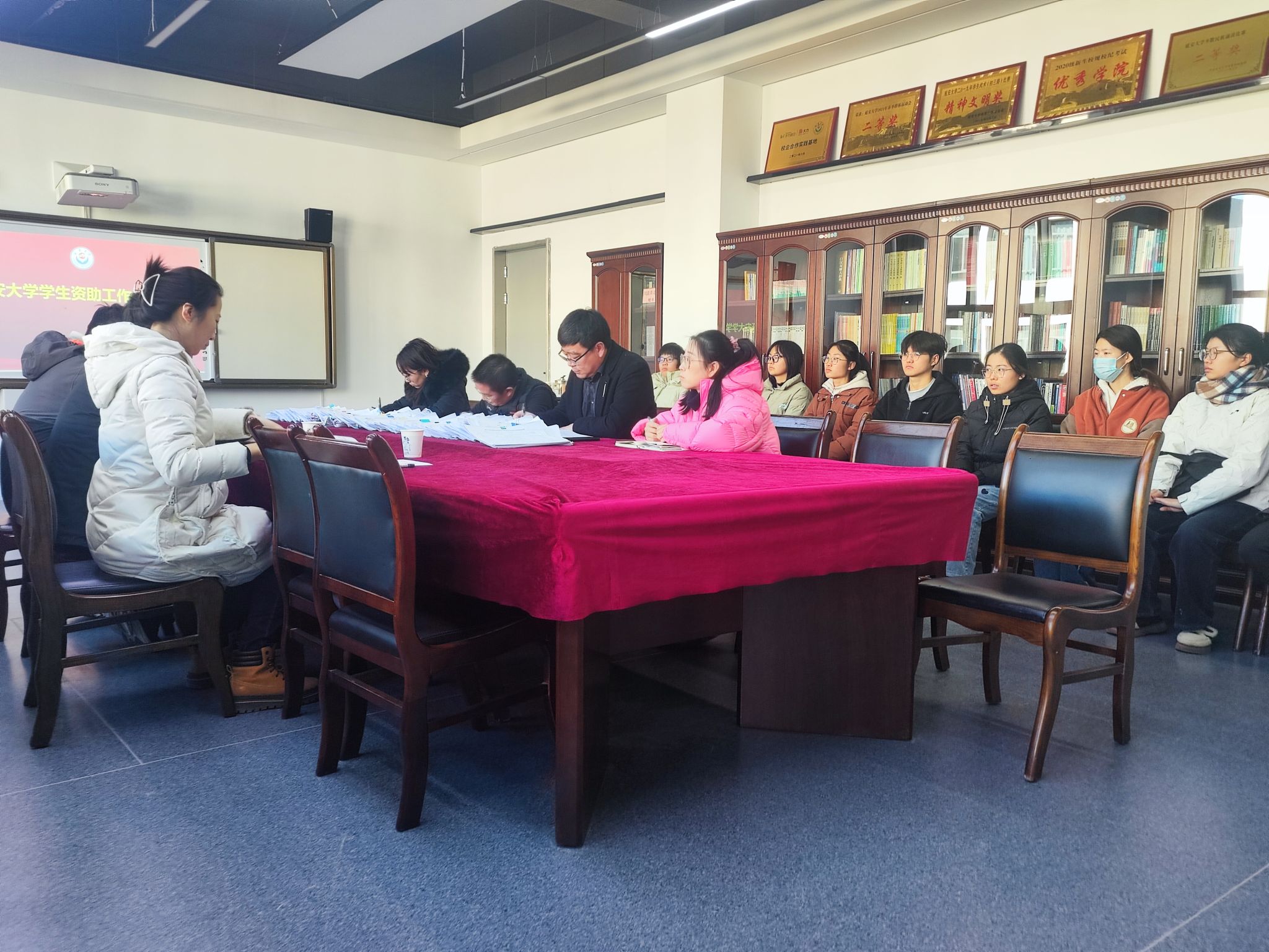 会议室举行。学工部副部长王彦杰、资助中心主任李洁、资助中心秦红志和91在线