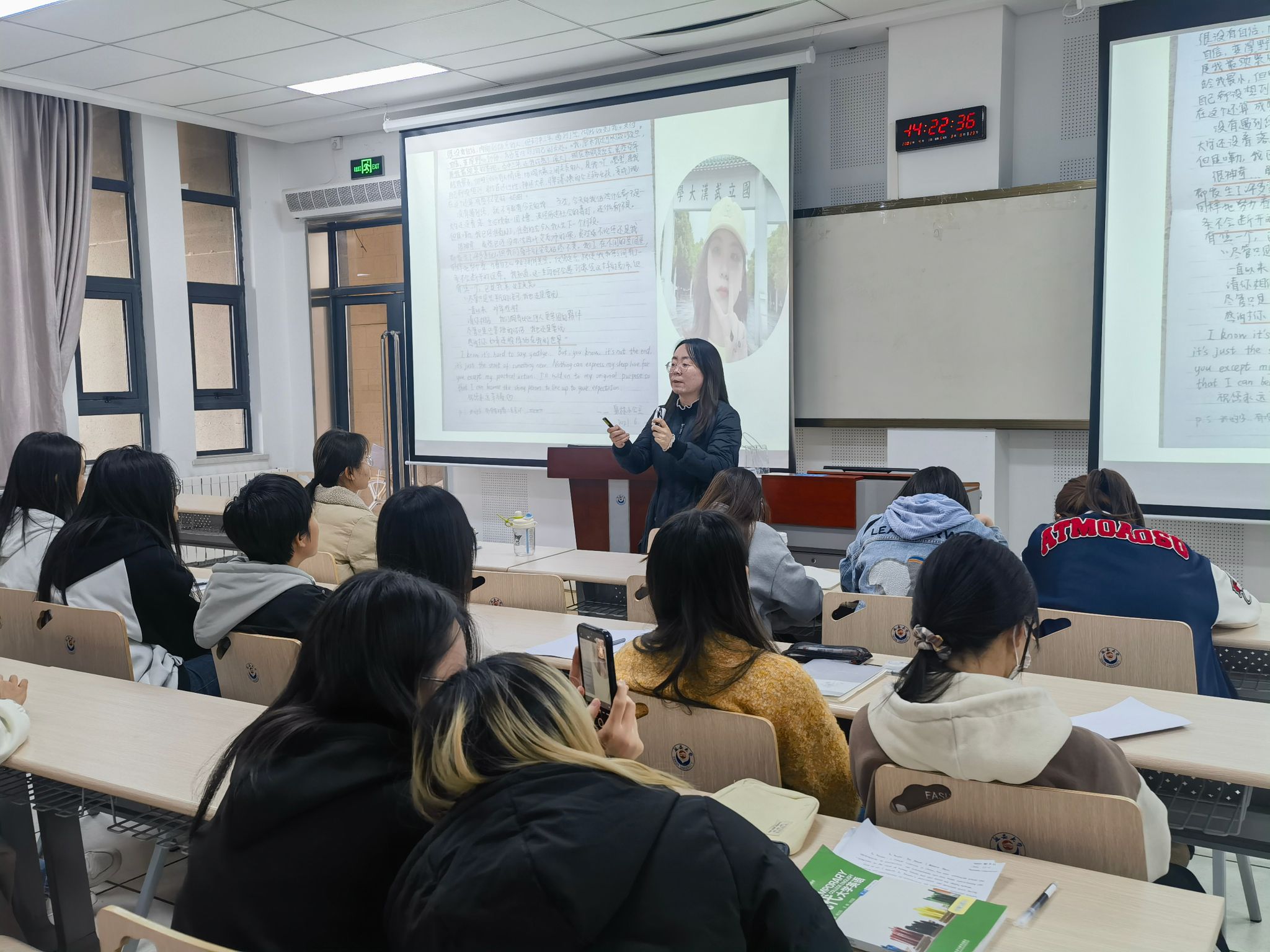 英语专业2022级本科生作了题为《师者如光、微以致远——班级管理的策略与实践》专场报告。报告会由学院党委副书记许多文主持。