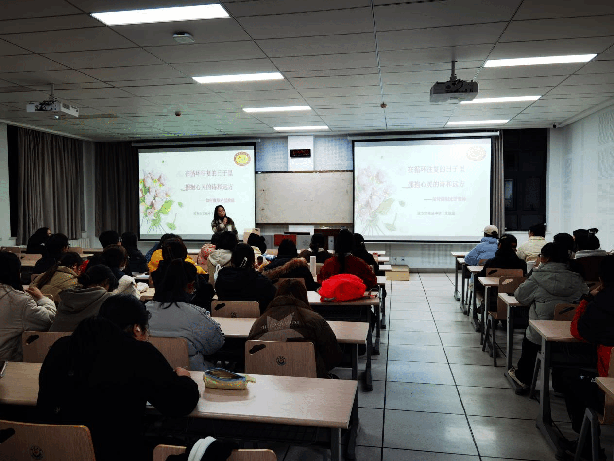 英语专业2021级本科生、2023级研究生做了题为“如何做阳光型教师”的专场报告,延安实验中学高级教师、市级教学能手南娜娜老师为英语专业2022级本科生做了“青年教师话成长”的专场报告,报告会由柴国喜博士主持。