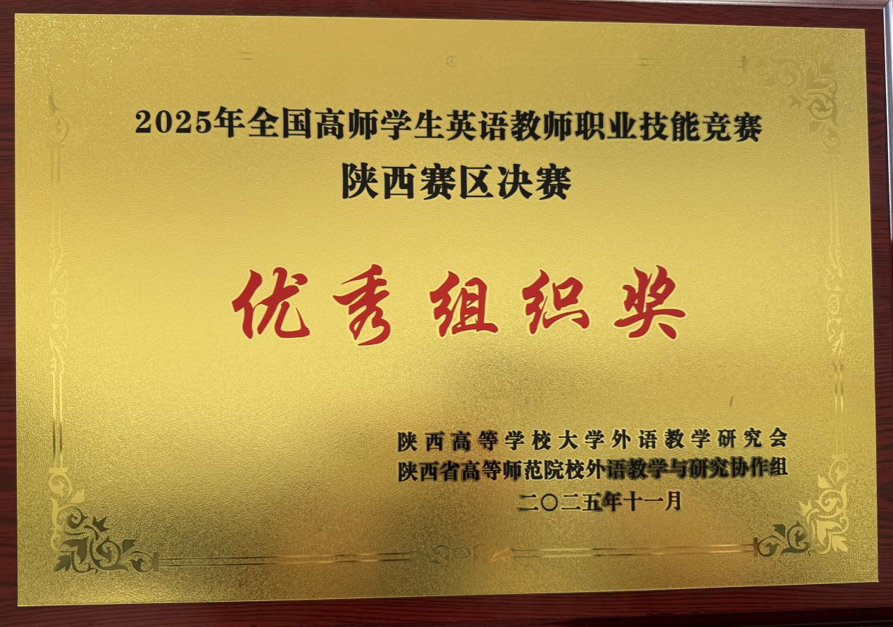 英语师范生的优秀教学实践能力与综合素养。我校荣获陕西赛区“优秀组织奖”。