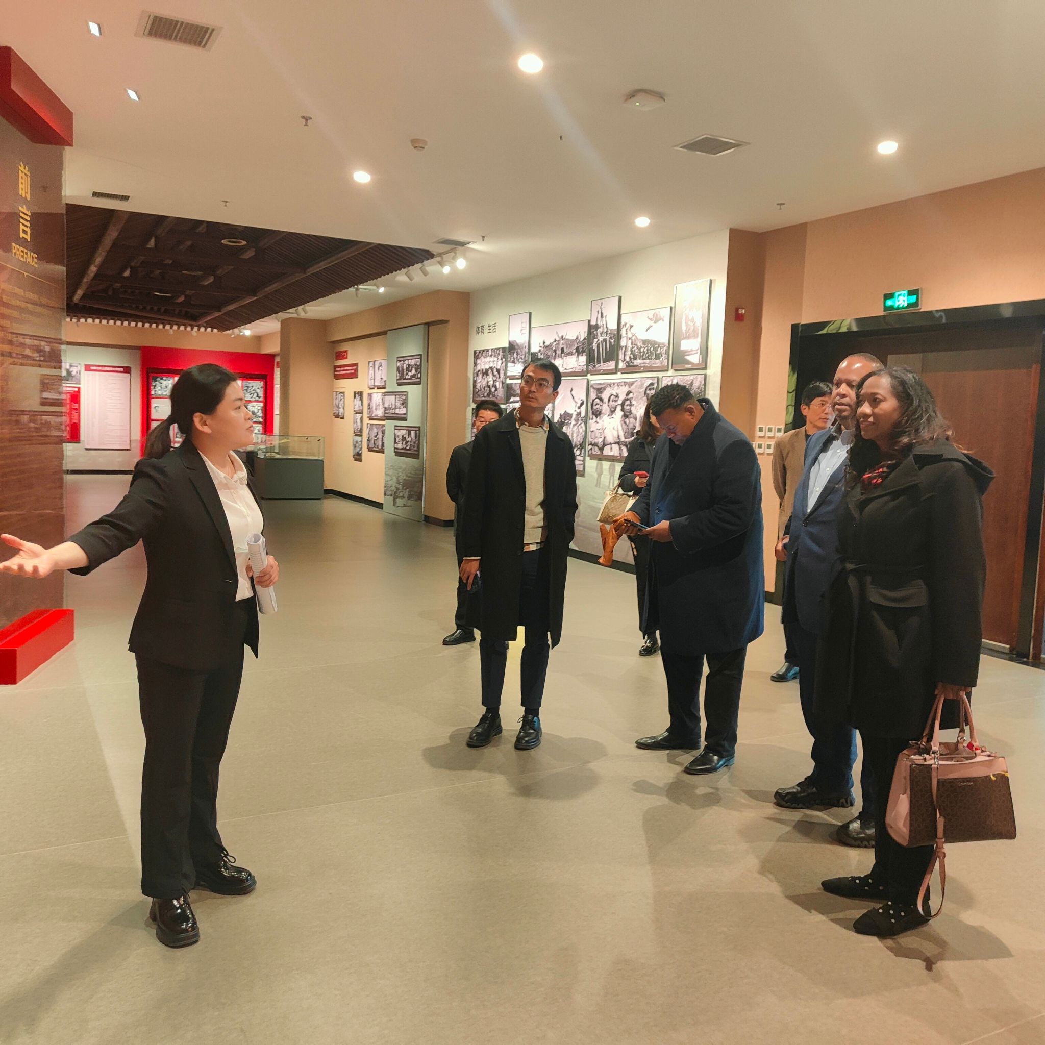 上午,代表团在我校国际处处长杨向宏,党政办副主任刘舰,斯诺研究中心副主任屈彩娥等陪同下参观了校史馆。屈彩娥向代表团一行介绍了我校的历史沿革、发展成就和国际交流等情况。