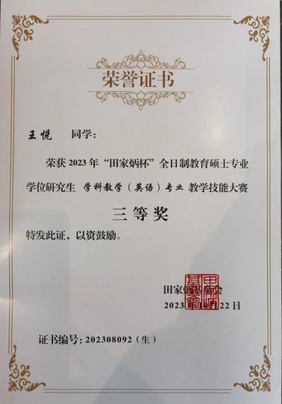 2022级研究生王悦荣获三等奖,指导教师为高治东教授。本次比赛展示了我校学科教学(英语)研究生的综合素质和创新能力,也体现了91在线