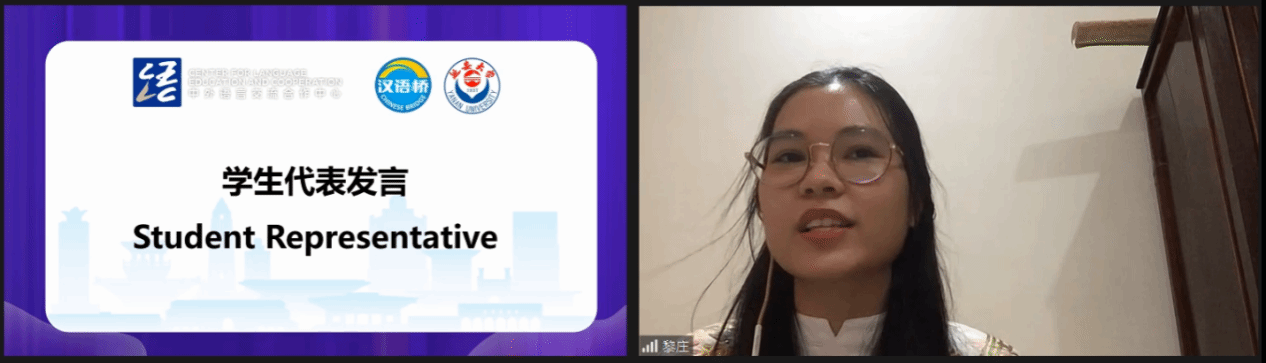 随后,越南学生代表黎庄和美国学生寇知行做了发言。他们表达了对老师和同学们的不舍之情,同时也谈到自己在本次学习中的心得体会。中文老师独特的教学方法,让他们对中文有了更浓的学习兴趣,对中国也有了更全面更深入的了解。