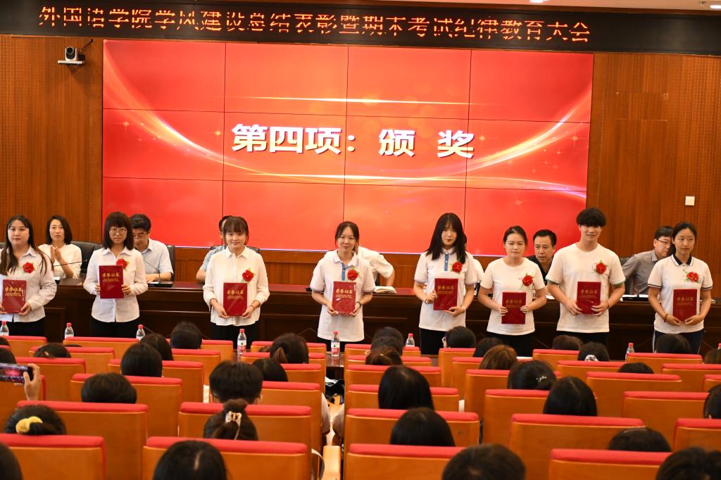 党委书记梁艳作了题为《凝心聚力抓学风,全心全意促发展》的学风建设工作总结报告。梁艳在报告中回顾了“学风建设年”中学院学风建设举措和成效,指出了存在的不足,对未来的发展作了规划。随后,院党委副书记许多文宣读了表彰文件,与会领导为先进集体和个人颁发了荣誉证书,学生代表张佳、朱静静、黄蕾作了发言,副院长李世荣作了考试纪律教育,全体同学在学生代表杨亦凡的带领下举行了诚信考试宣誓仪式。