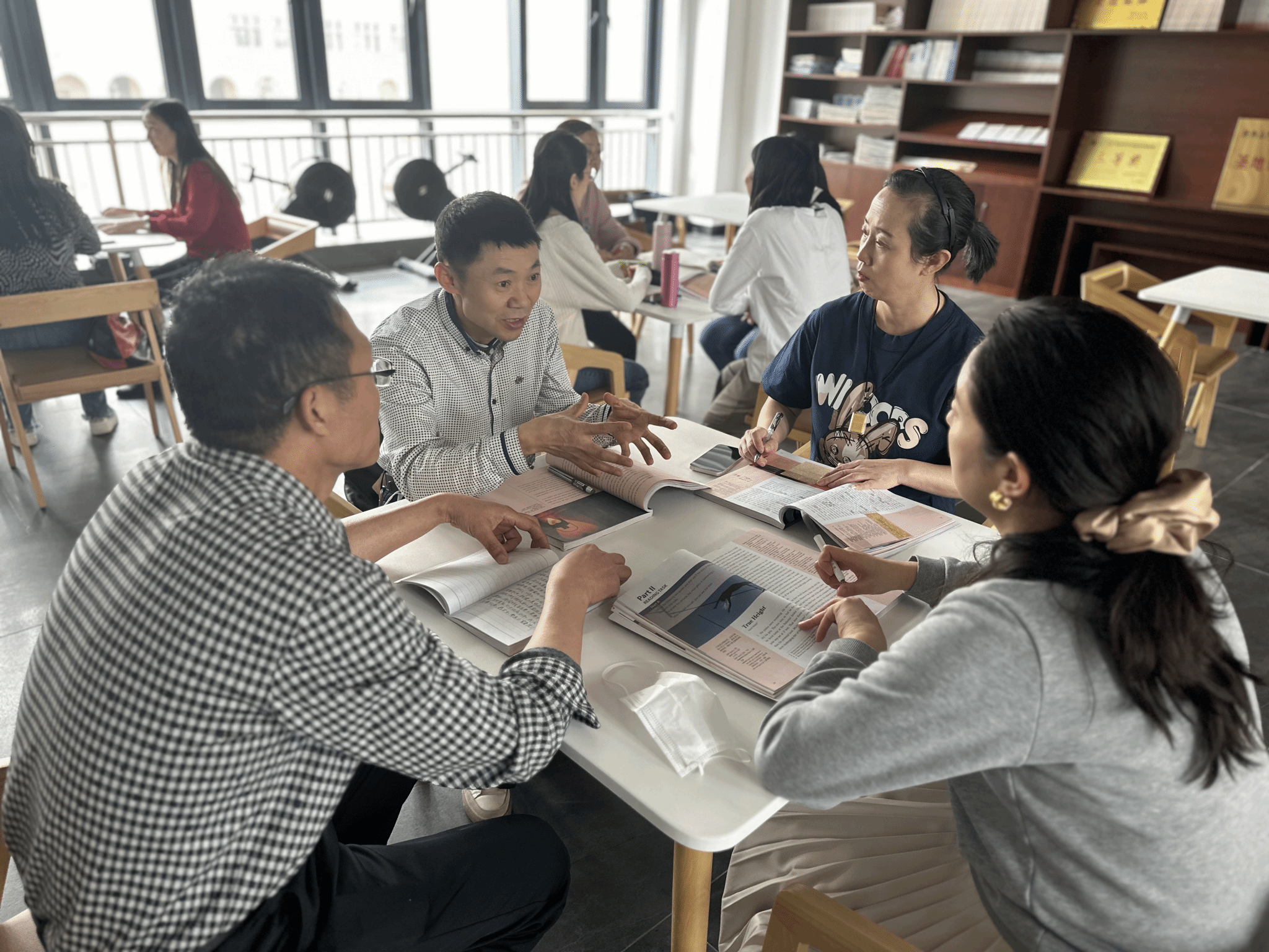 此次大学英语课程思政教研会上,老师们针对全新版大学高阶英语、进阶英语综合教程及21世纪大学英语综合教程三套教材的教学设计进行了热烈讨论,分享了教学经验,交流了教学方法,初步统一了基本教学设计方案。