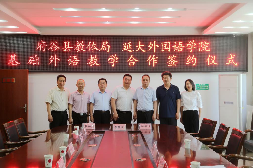 与榆林市府谷县教体局在府谷县签订了基础外语教育合作协议。府谷县副县长刘春雷,教体局党组书记、局长吕元,府谷县政府办、财政局、府谷中学等部门负责人,我校副校长付峰,91在线