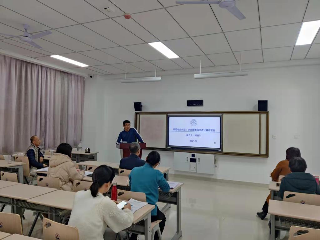 梁润生院长立足师范专业认证有关精神,围绕我校《2021版本科专业人才培养方案修订指导意见》,就英语专业人才培养目标、毕业要求的形成过程以及毕业要求指标点的分解思路等进行了详细说明。与会人员本着认真负责的态度,对标对表培养目标和毕业要求,对分解指标进行了热烈讨论,提出了修改意见和建议,对完善英语专业人才培养方案起到了积极作用。结合会议精神,学院要求围绕英语专业认证,同步启动英语专业课程教学大纲的修订工作。