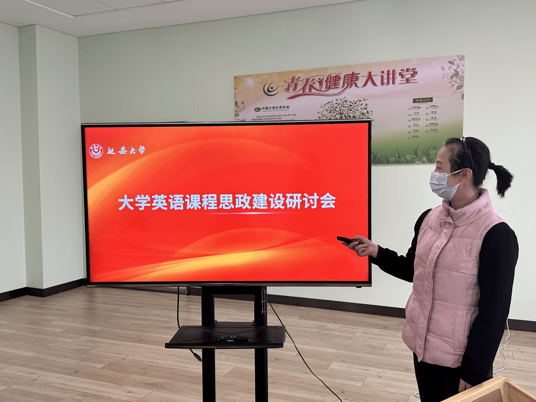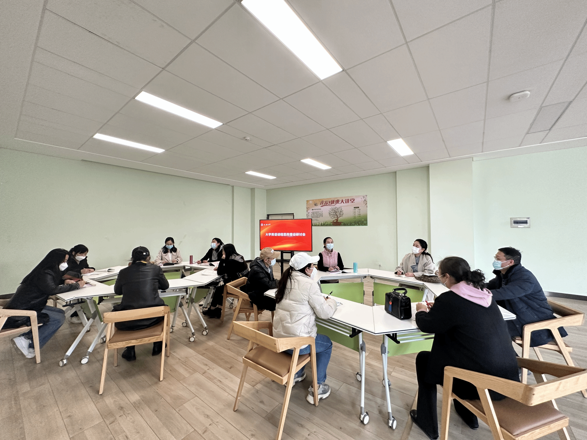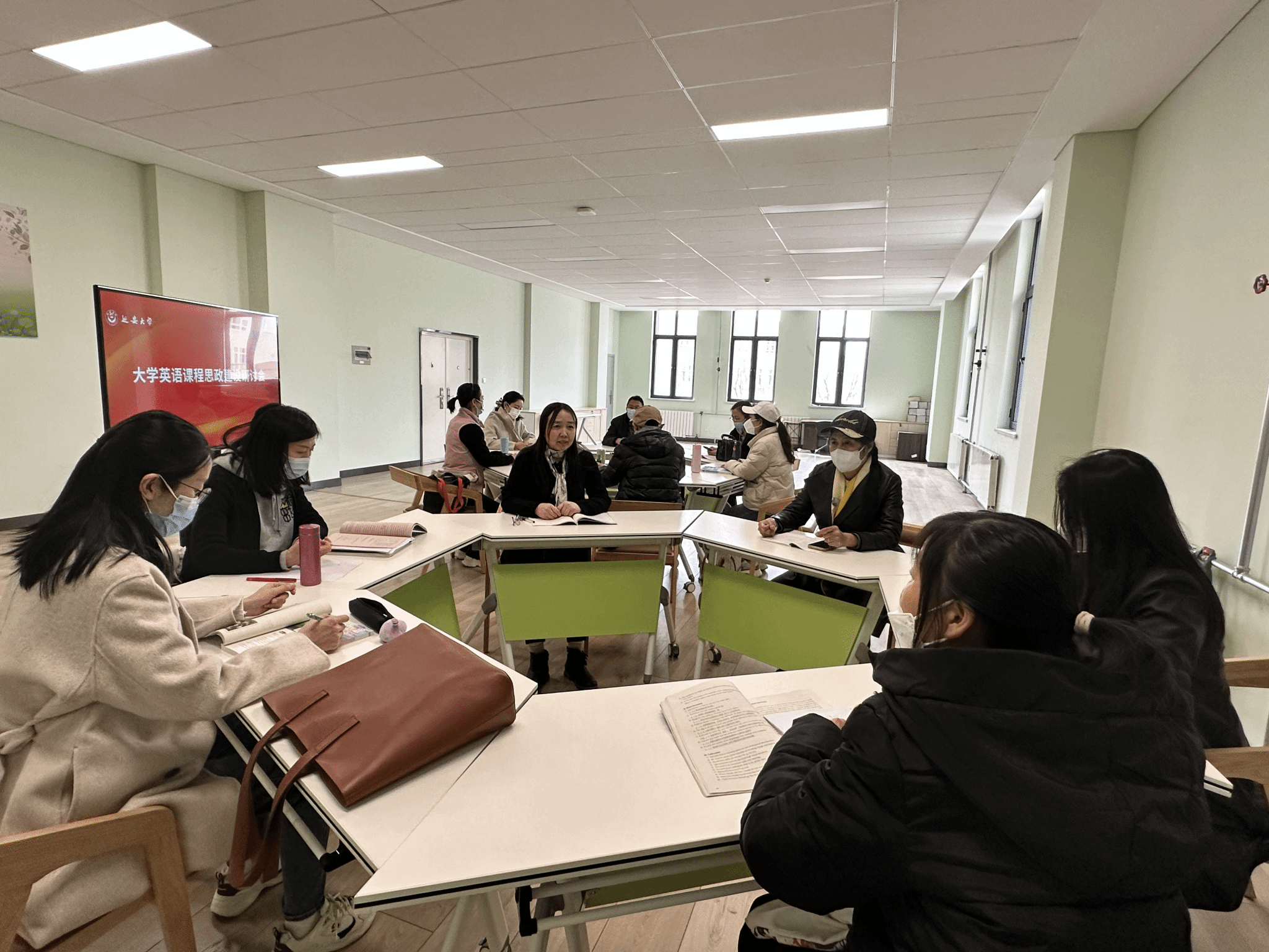 为贯彻落实教育部《高等学校课程思政建设指导纲要》精神,深入推进外语课程思政建设,11月8日下午,大学英语教学部第二教研室在大学生活动中心举办了课程思政建设研讨会。会议由教研室主任张彩云老师主持,全体教研室教师参加。
