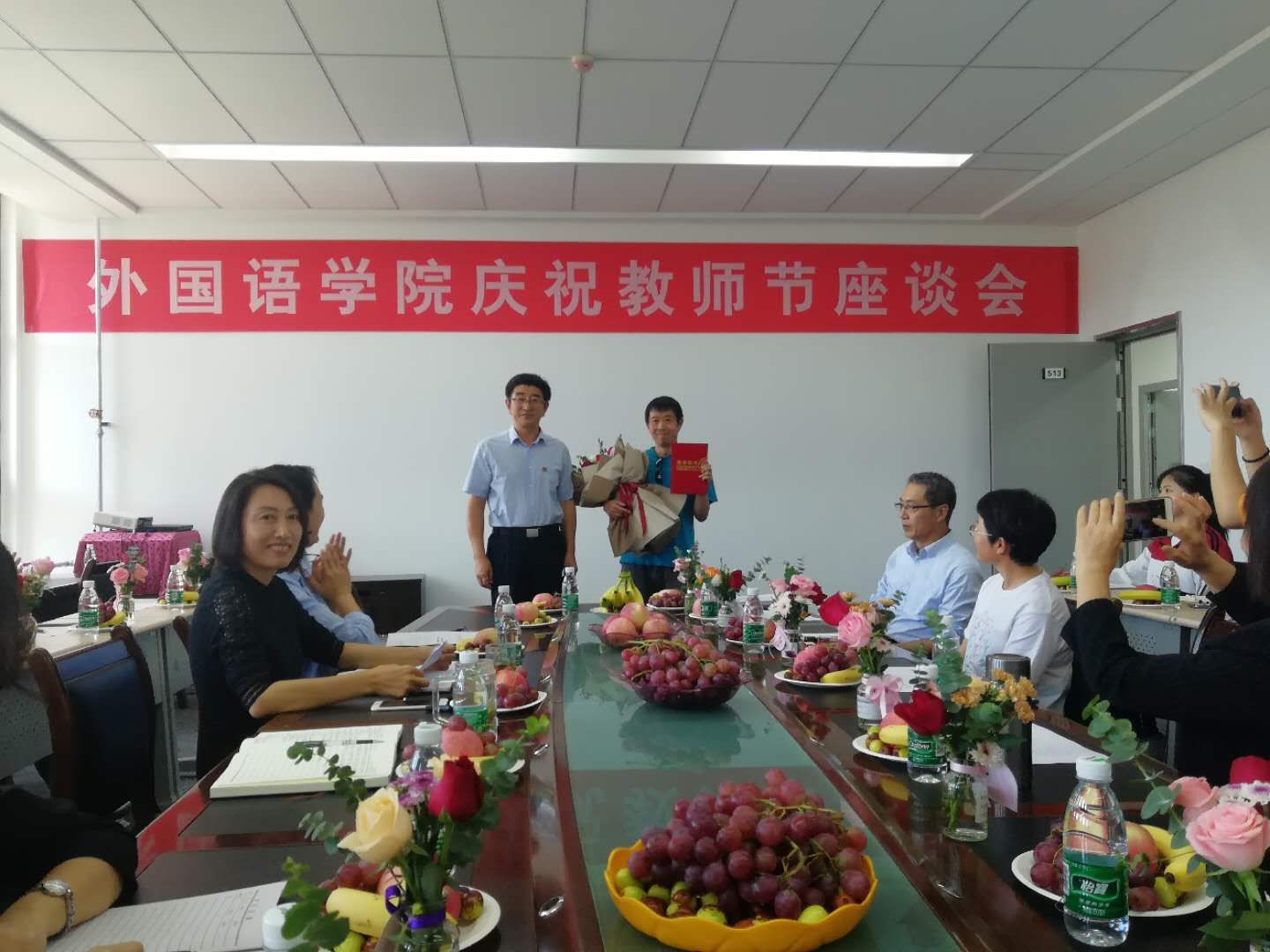 9月8日下午,学院在五楼会议室举行第36个教师节座谈会。新老教师代表、系主任、教研室主任、学生代表及全体院领导参加了会议。会议由院党委书记梁艳主持。