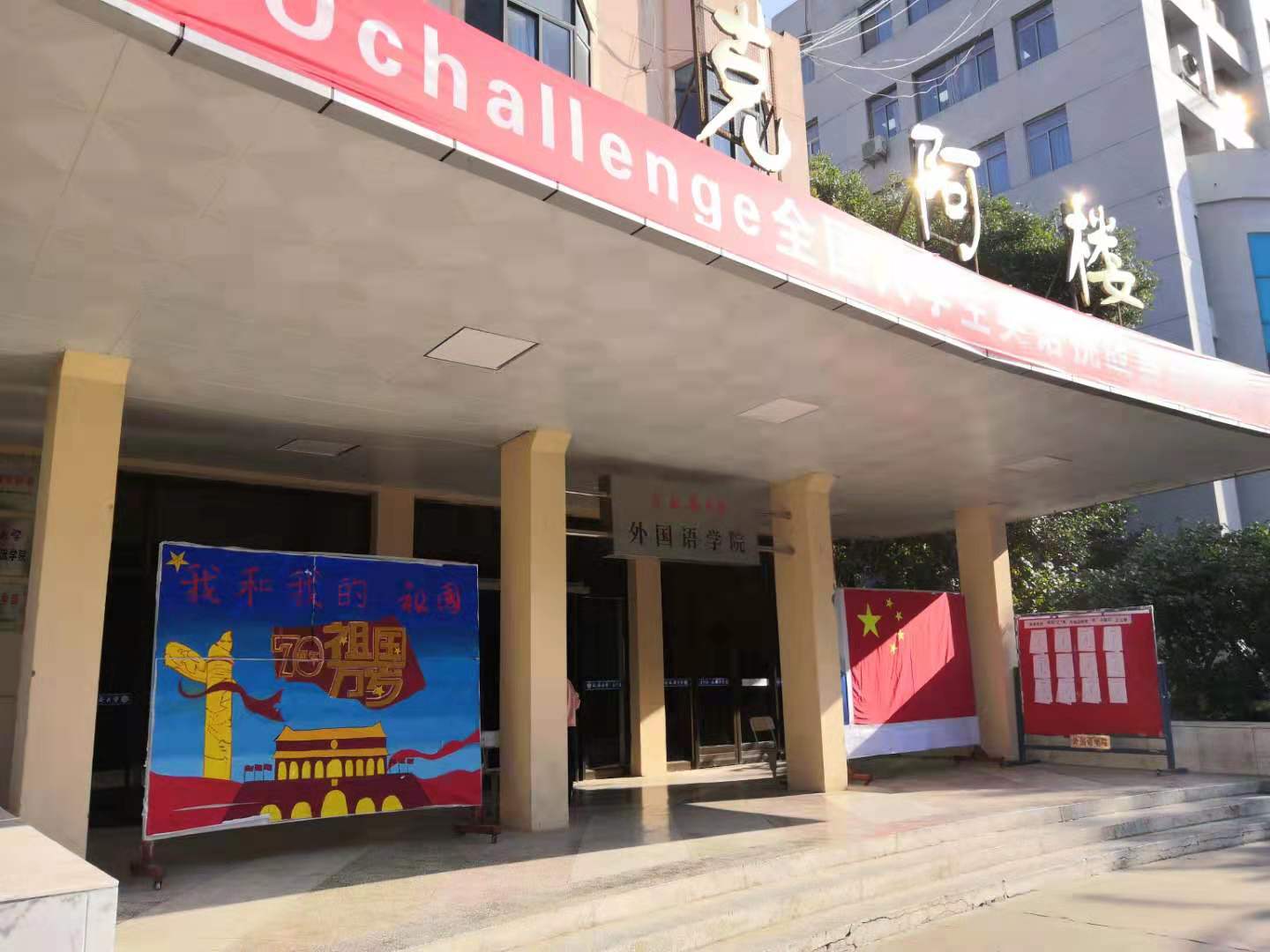 此外,外语学院还组织了“我为祖国唱赞歌”征文比赛、“我和国旗合个影”同框展示活动,以表达对祖国70华诞的美好祝福,激发大家的爱国热情。