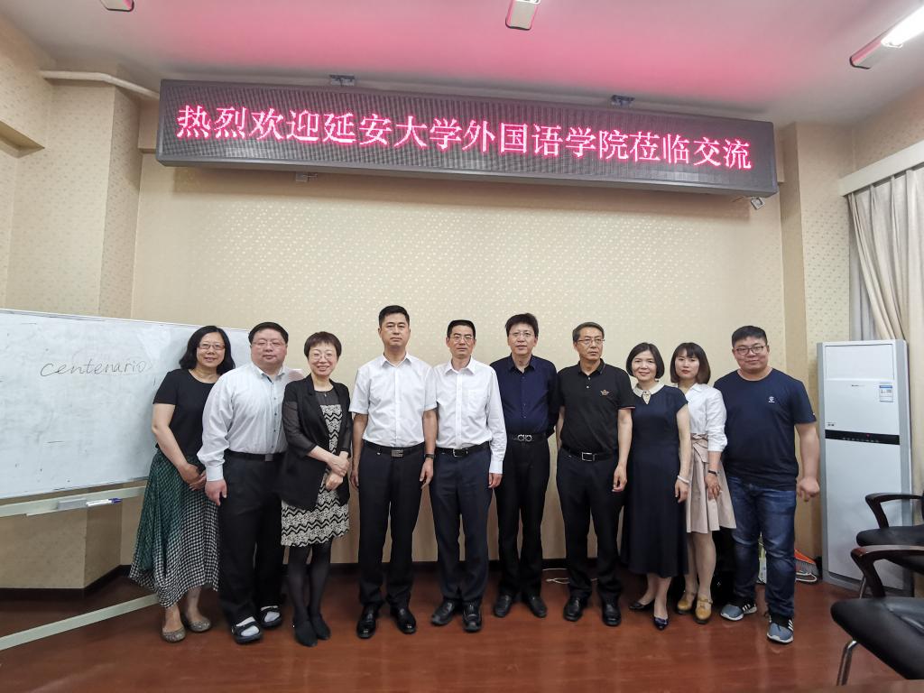 院长李京廉、党委书记杨晖、副院长姜爱红、副院长张帅和副书记周芳集以及英语系主任张剑、日语系主任周晨亮等在中心教学楼515会议室会见了吴卫东院长一行。
