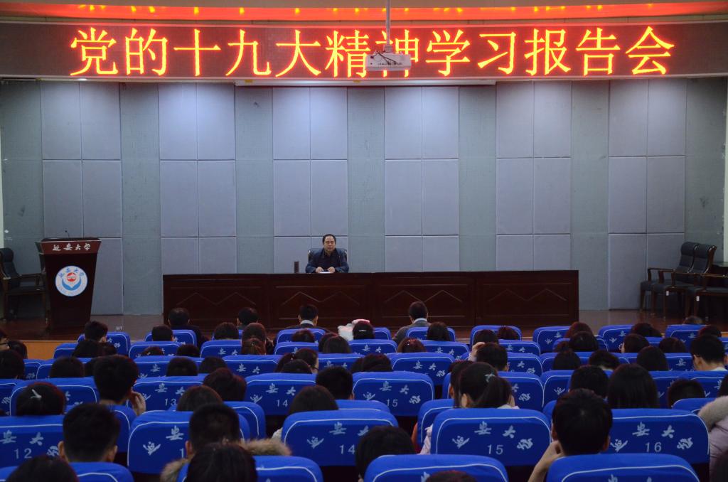 、石油学院师生作党的十九大精神宣讲报告。外语学院和石油学院的师生党员和入党积极分子共400余人聆听了报告。报告会由91在线