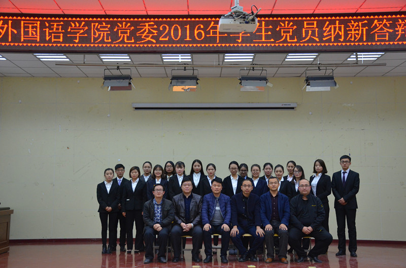 党委于11月30日下午在外语礼堂举行2016年12月党员纳新答辩会。校党委组织部组织科科长高曙光、公管学院赵海龙、经管学院李利锋、规划处许多文、外语学院常琅担任评委。学院党委书记董振文、党委副书记王随卷、全院所有学生党员和入党积极分子共100余人观看了答辩会。