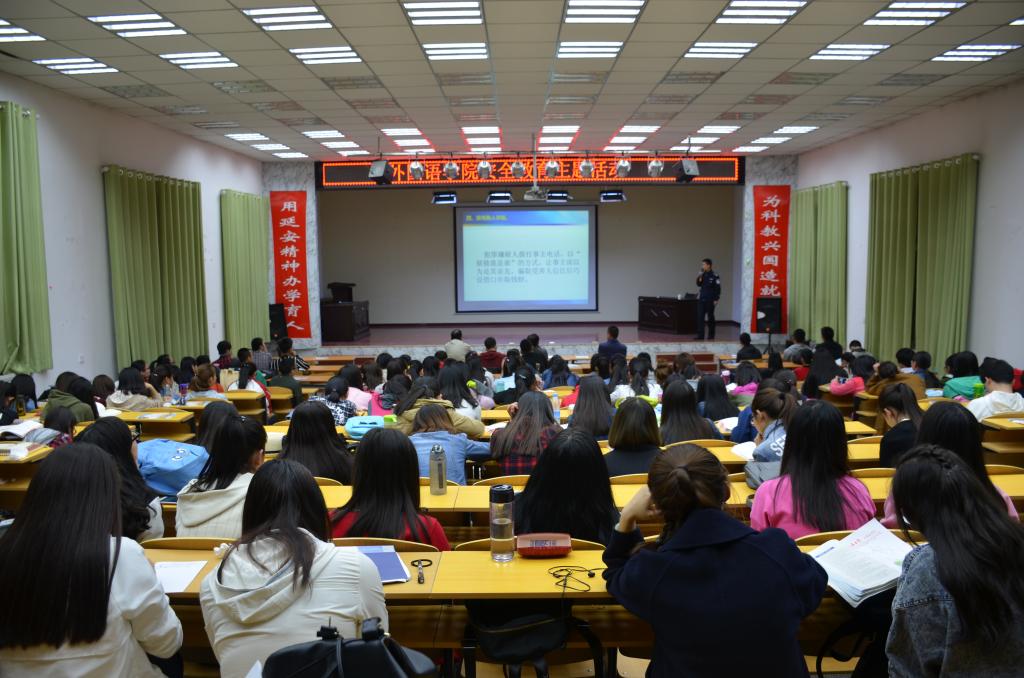 与保卫处在外院礼堂举办了安全教育主题报告会。学院党委书记董振文、保卫处副处长高东旭、派出所副教导员姜建雄、学院辅导员和200余名师生聆听了报告。报告会由党委副书记王随卷主持。