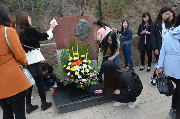 扫墓活动结束后,全体参与活动人员来到杨家岭革命旧址,在中共七大礼堂前,集中聆听了历史文化学院李生策老师讲授的《习近平总书记和为人民服务的坚定信念》现场教学课。李老师声情并茂,为大家详细讲述了习近平总书记在梁家河村插队时的故事,重现了习近平总书记在延安插队期间心系群众、带领群众、奉献群众、为人民服务的点点滴滴,使所有活动参与人员深受教育。