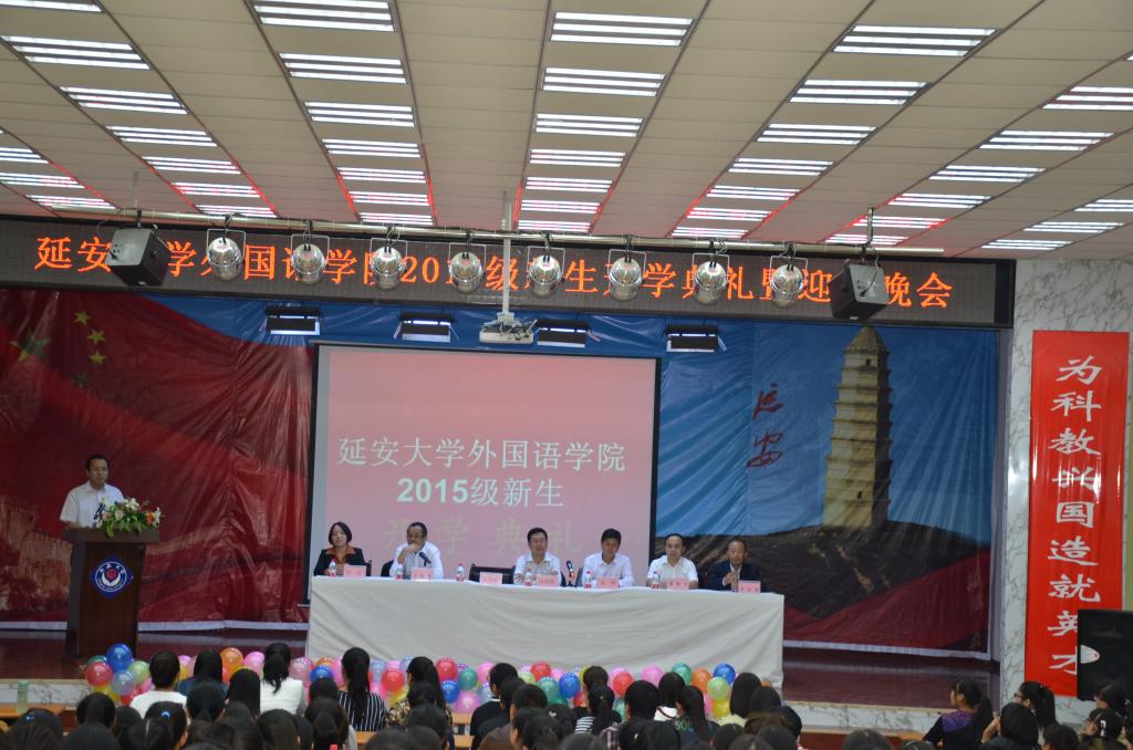 在外院礼堂举行了2015级新生开学典礼暨“新起航、心期待”迎新晚会。校党委副书记田伏虎,学工部部长高峰及学院全体领导、辅导员、班主任参加了开学典礼和迎新晚会。开学典礼由学院党委副书记王随卷主持。