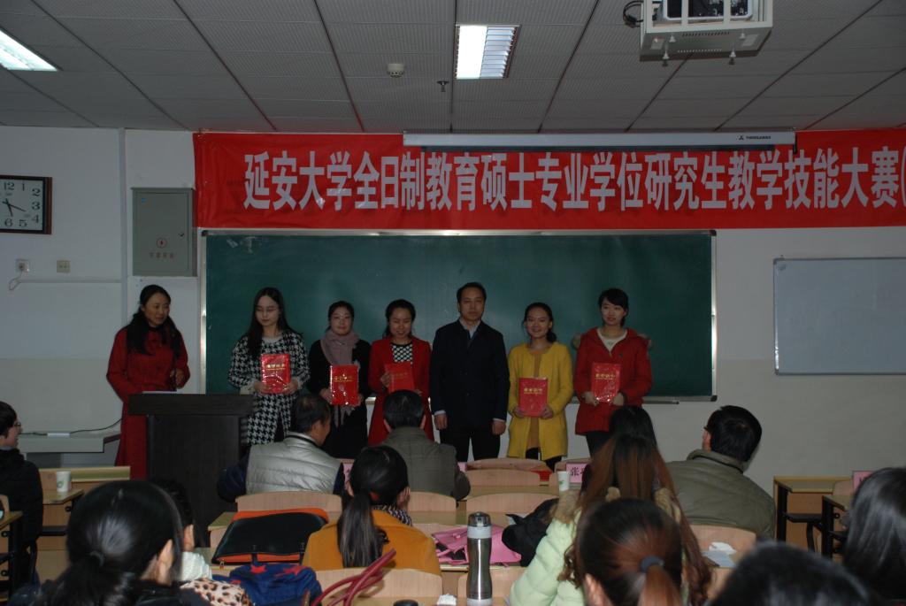 12月19日,由研究生处主办的我校首届全日制教育硕士专业学位研究生教学技能大赛决赛在玉章楼5308教室举行。各学院选送的9名选手经过三个多小时的紧张角逐,91在线 2013级教育硕士何晶晶、陈思萌、邓荷露获得特等奖,魏晓雯、刘莎、杨雪获一等奖。