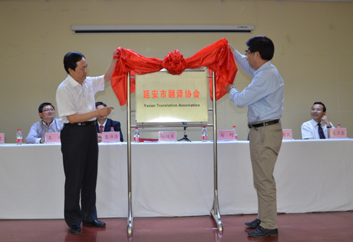 随后,马珂副主席与胡俊生副校长共同为延安市翻译协会揭了牌。