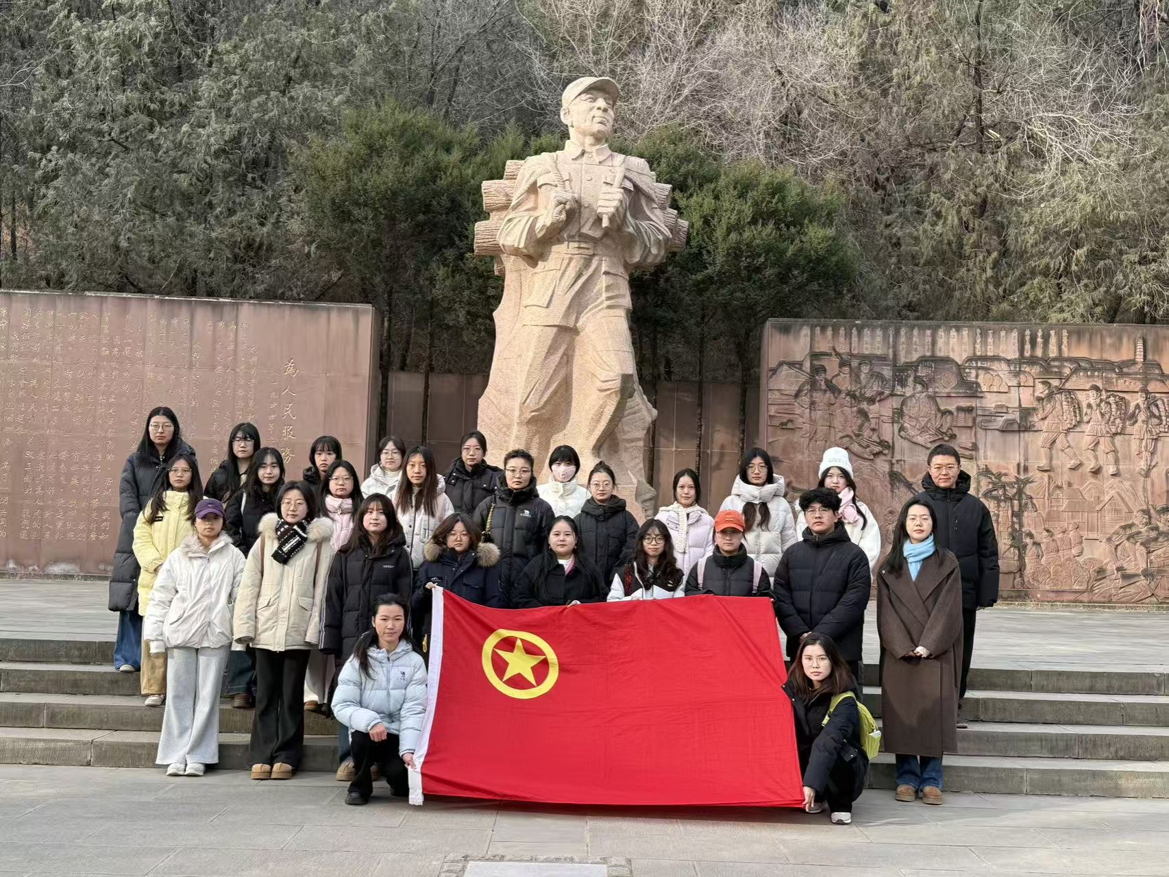 于12月11日在延安市纪念张思德追悼会会场组织开展“悟延安精神践担当 以青春初心勇前行”主题活动,辅导员齐曼、2025级研究生团支部全体成员参与活动。
