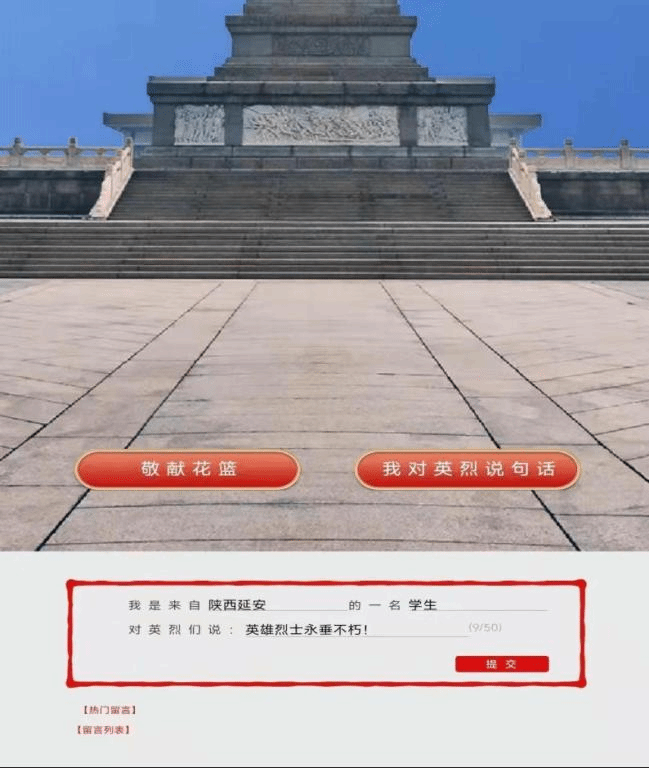 此外,学院还组织同学们参与了“网上祭奠先烈”的活动。通过中华英烈网、中华人民共和国退役军人事务部官网和陕西文明网这三个渠道,在网上向先贤先烈鞠躬献花、发表祭拜感言,缅怀英烈的英雄业绩,铭记中华民族的抗争历程,以此来了解民族传统文化、学习祖国历史、学习英模事迹。一句句饱含感恩的留言在奔腾的互联网上汇集成一条青春的河流,向人民英雄表达了崇高的敬意和无限思念。