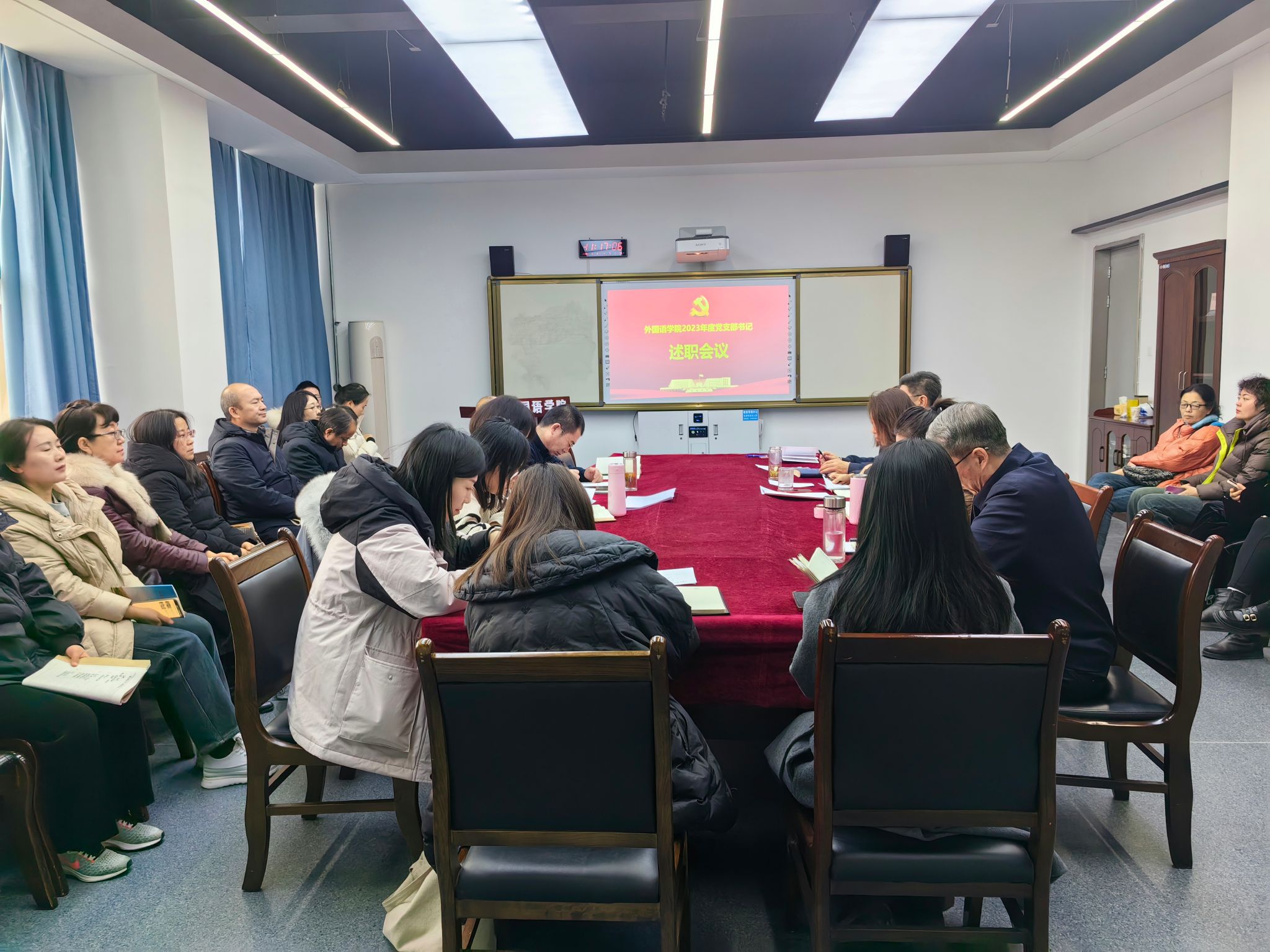 2024年1月17日下午,学院在会议室举行了2023年党支部书记述职考核会议。院领导班子、全体党员、民主党派代表、学生代表参加了会议。会议由院党委书记梁艳主持。