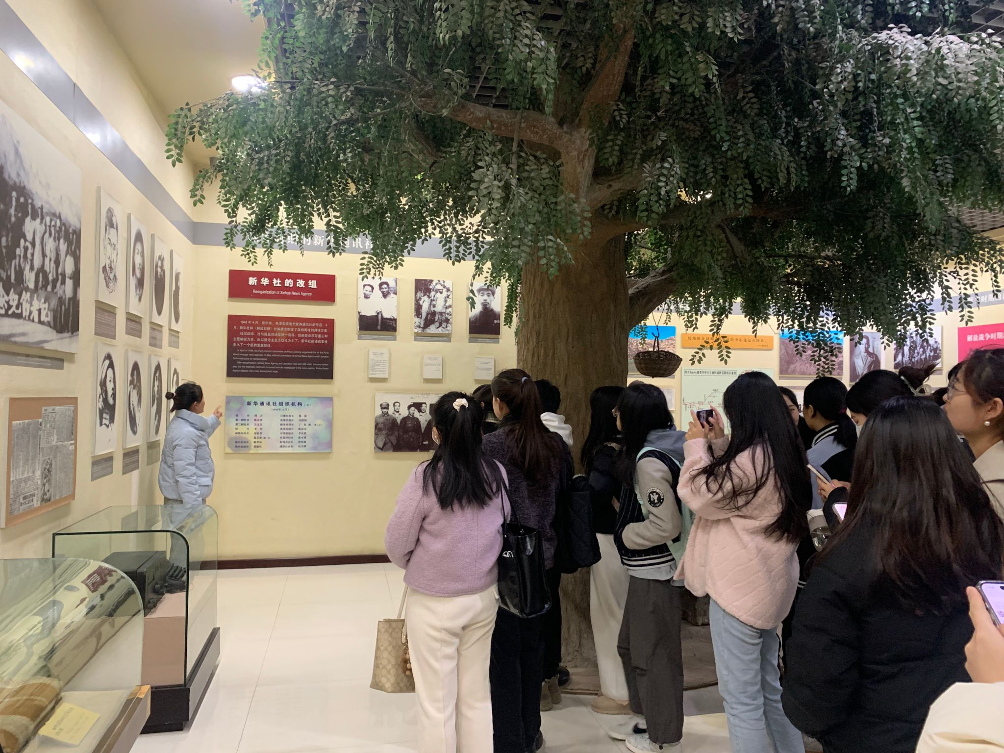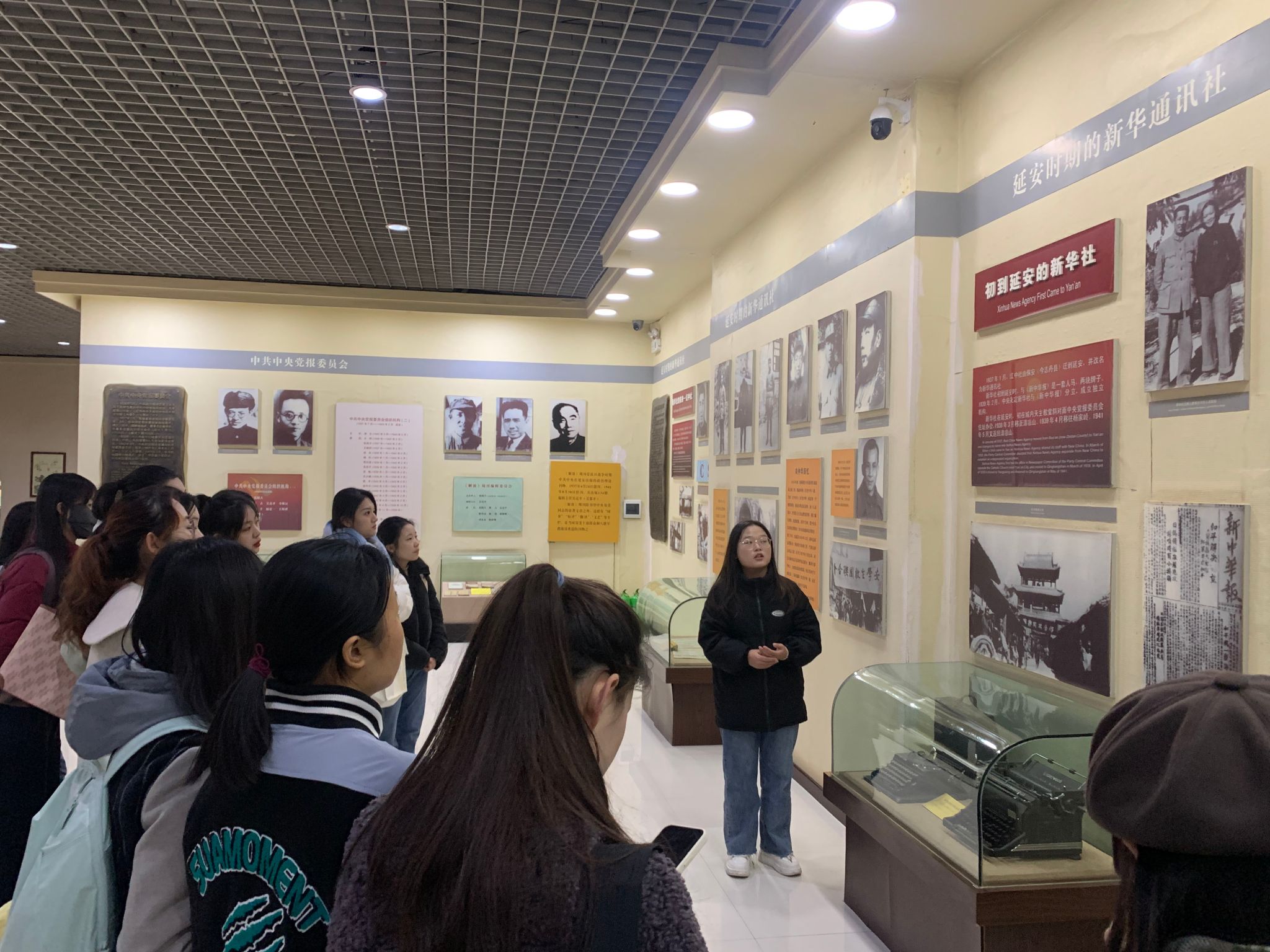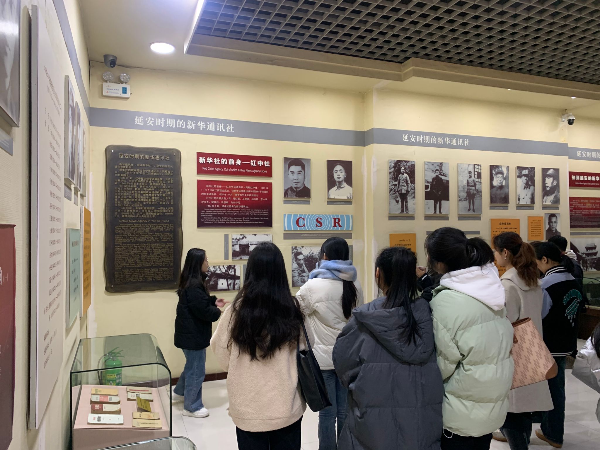 首先,全体在讲解员的带领下参观了延安新闻纪念馆。随后,曾立民、丁丽娜、贾昊、李佳慧和王丽媛等五位同学分别用英文带领大家学习了解了新闻纪念馆内的简介、中共中央党报委员会、新华通讯社的发展历程等部分的展示牌和翻译译文技巧。接着,同学们自由参观新闻纪念馆。