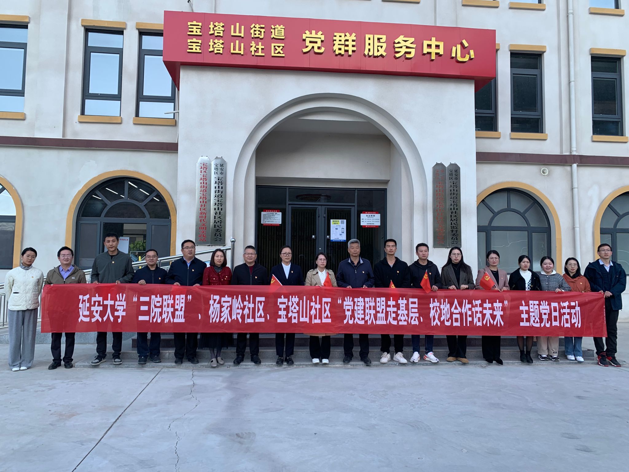 联合生科、化工学院前往宝塔山社区开展了“党建联盟走基层、校地合作话未来”主题党日活动。各学院党委书记刘雨录、白亚军、梁艳,党委副书记赵芝瑞、高媛媛及组织员、辅导员和宝塔山社区党总支书记李春花、杨家岭社区党总支书记周飞飞等20余人参加了主题党日活动。