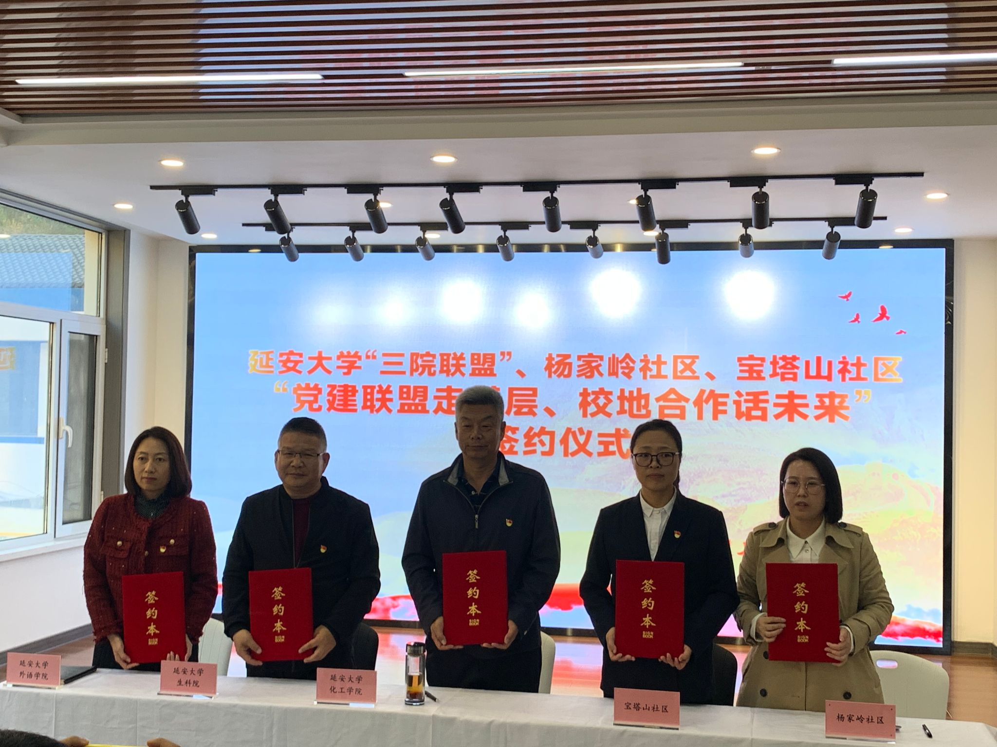“三院联盟”、杨家岭社区、宝塔山社区“党建联盟走基层、校地合作话未来” 签约仪式在宝塔山社区会议室举行。仪式由梁艳主持。各单位党建负责人介绍了本单位特色和亮点党建工作,签订了《“党建联盟走基层 校地合作话未来”合作协议》,一致表示将充分发挥各方资源优势、调动各方积极因素,为搭建实践育人平台、助力基层社会治理、构建特色党建机制贡献力量。