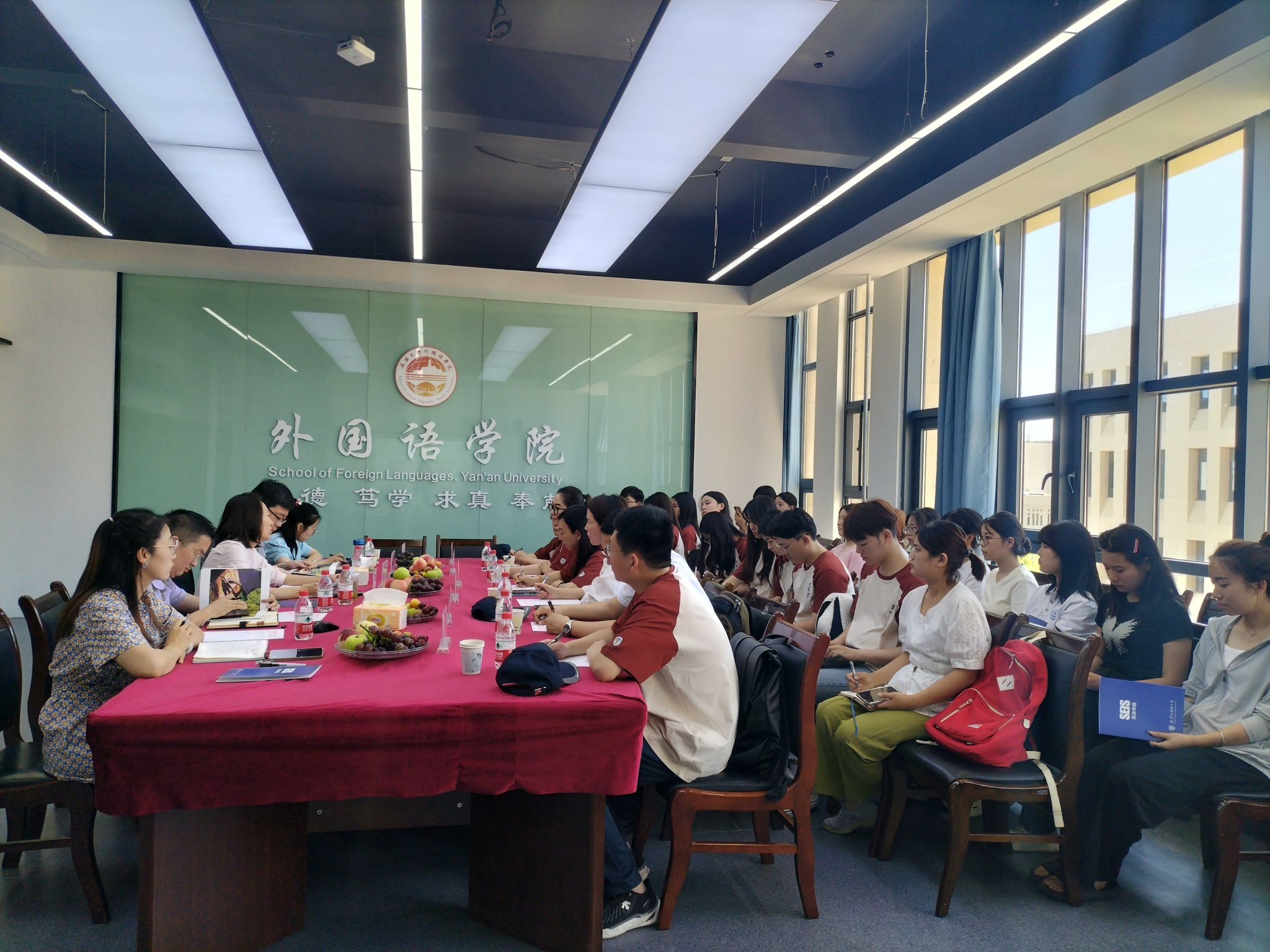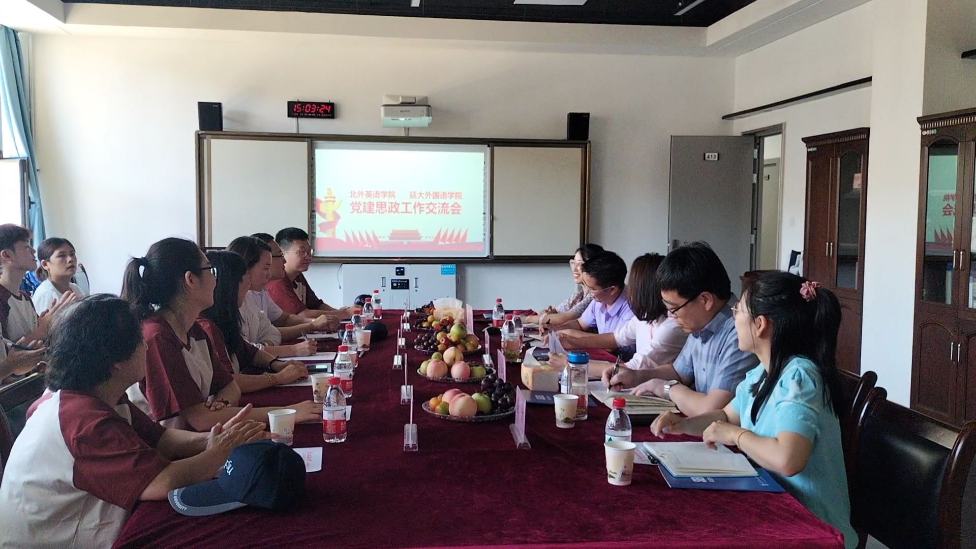的外语教育和北京外国语大学的外语教育有着深厚的历史渊源,共同肇始于1941年成立的抗日军政大学三分校俄文大队以及后来的延安外国语学校,是中国共产党创办外语教育的源头之一。在简要回顾了学院历史沿革及办学成就之后,梁艳向王明欣一行介绍了外语学院在党建和学生思想政治教育方面的主要做法和经验。她介绍说,在多年的办学实践中,外语学院坚决贯彻党的教育方针,积极践行立德树人根本任务,以学校“延安精神熔铸师魂工程”和“延安精神‘一体两翼’铸魂育人工程”为基本遵循,以学院“宝塔烛照”为主要抓手,大力推动师德师风建设,开展了集“理想信念、专业能力、服务社会”于一体的党建和学生思想政治教育工作,取得了良好成效。
