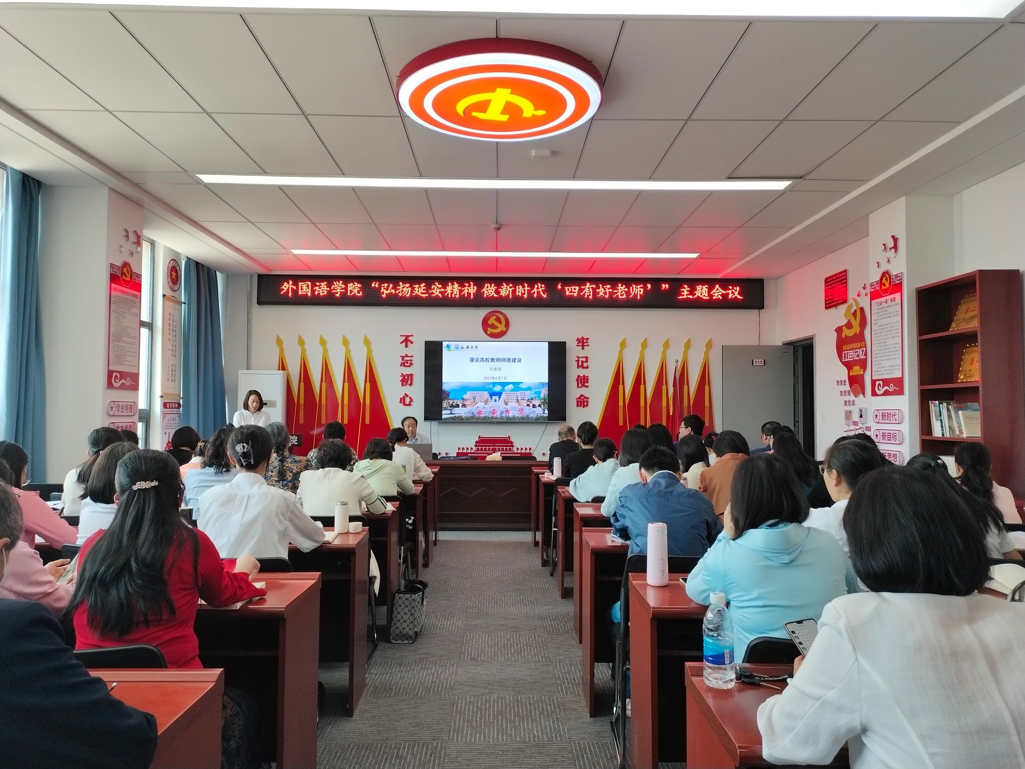 在学院党建活动室举行了“弘扬延安精神 做新时代‘四有’好老师”主题教育活动。学院全体教职工参加了活动。活动由学院党委书记梁艳主持。