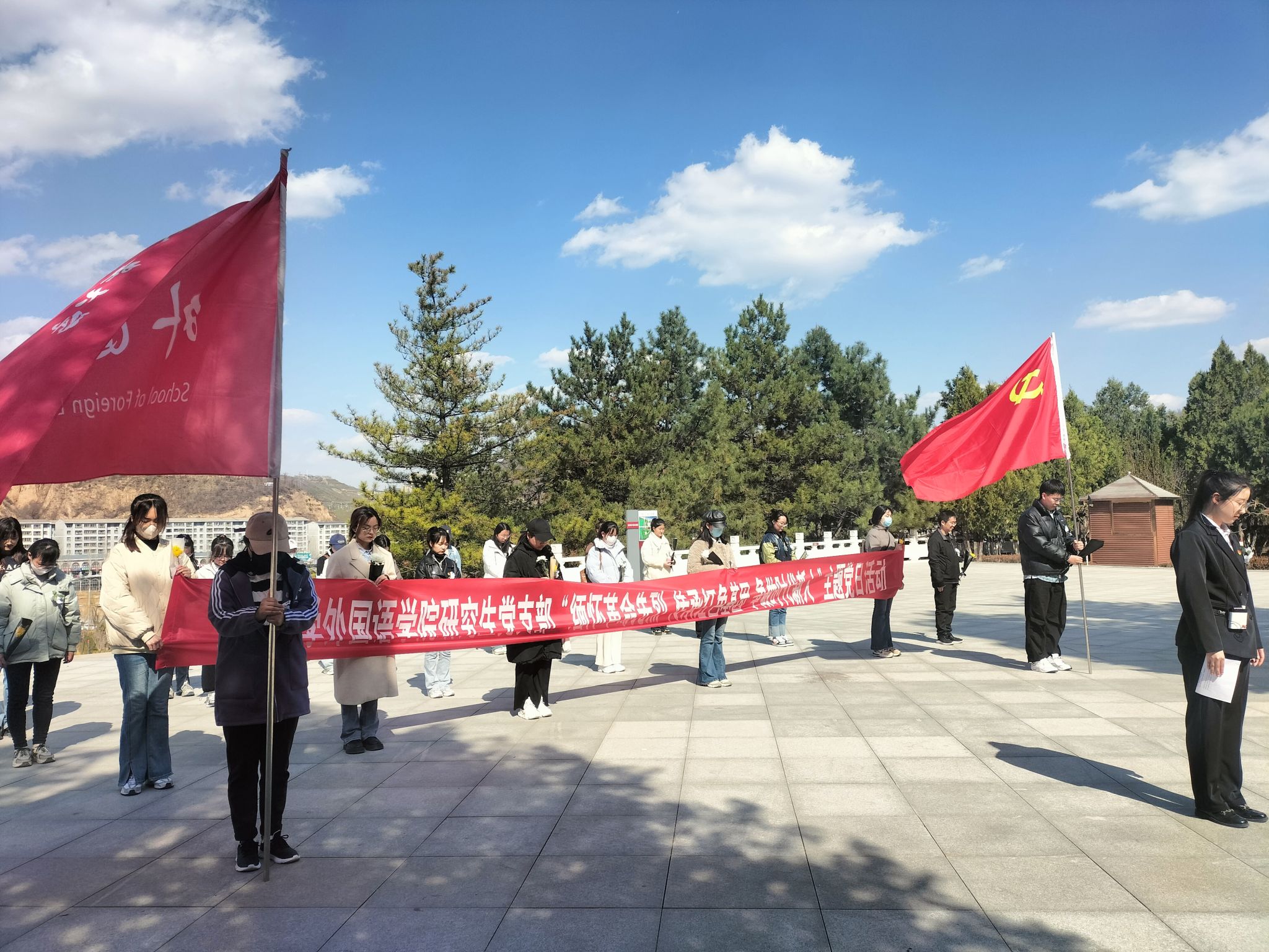 研究生党支部在院党委统一部署下,徒步前往“四八”烈士陵园开展了“缅怀革命先烈、传承红色基因、争做时代新人 ”主题党日活动。党支部全体成员、入党积极分子参加了活动。活动由张倬萌主持。
