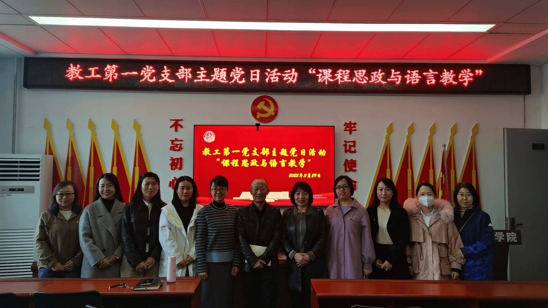 党员活动室召开主题党日活动—课程思政与语言教学(日语教学),活动由李艳老师主持。