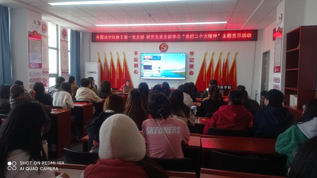 教工第一党支部、研究生党支部“英文学习党的二十大精神”联合主题党日活动在学院党建活动室举行。两个支部全体成员及入党积极分子参加了活动。