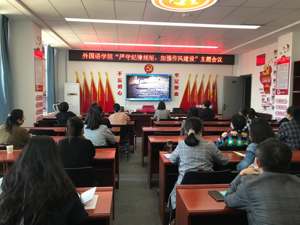 在学院党建活动室召开了“严守纪律规矩,加强作风建设”主题教育会议。学院领导班子及全体教工党员参加了会议。会议由院党委书记梁艳主持。
