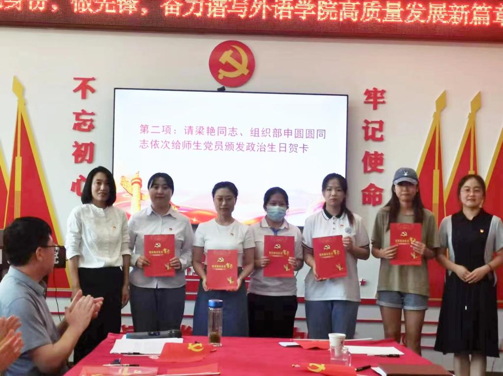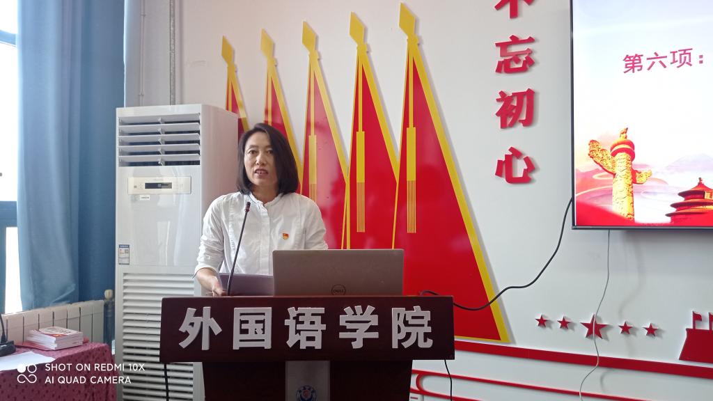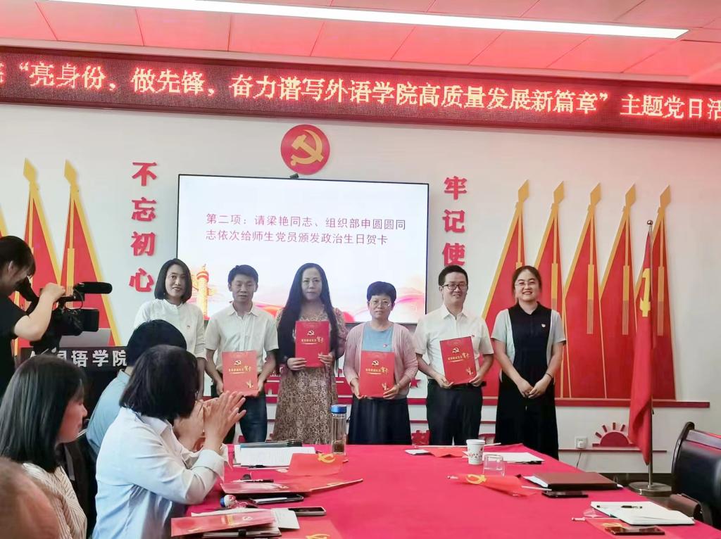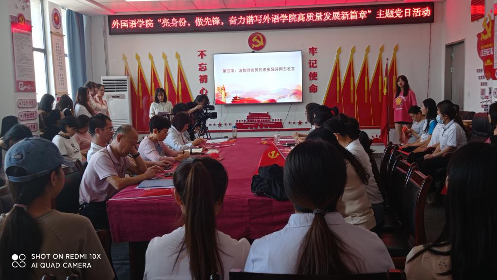 在学院党建活动室举行了“亮身份,做先锋,奋力谱写外国语高质量发展新篇章”主题党日活动。党委组织部副部长申圆圆、学院党委书记梁艳、全体党员师生参加了活动。活动由院党委副书记许多文主持。