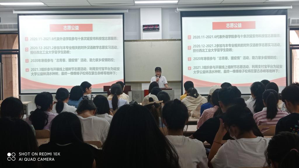 好人好事之星”结合自身实际进行了现场分享。从疫情期间志愿服务者的责任与担当到同学受伤后半夜赶往医院的路上,从献血车上的涓涓热血到中华骨髓库的志愿者证书,从助力环保的公益植树到流浪狗基地的爱心关爱,无不展现着延大学子在弘扬和践行社会主义核心价值观方面的良好精神风貌,彰显了我校学生的延安精神特质时代新人的优良品质。