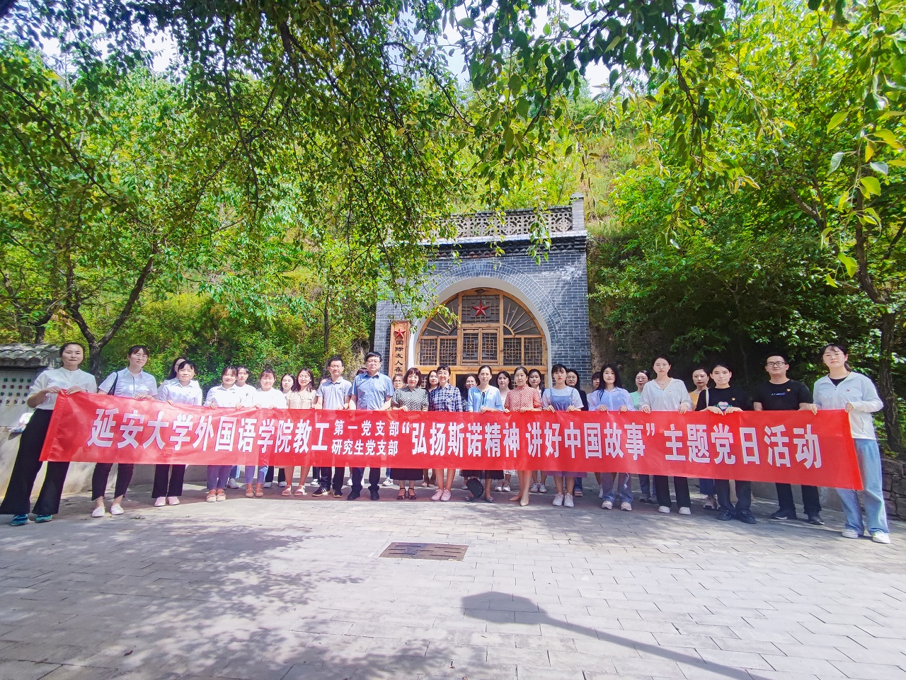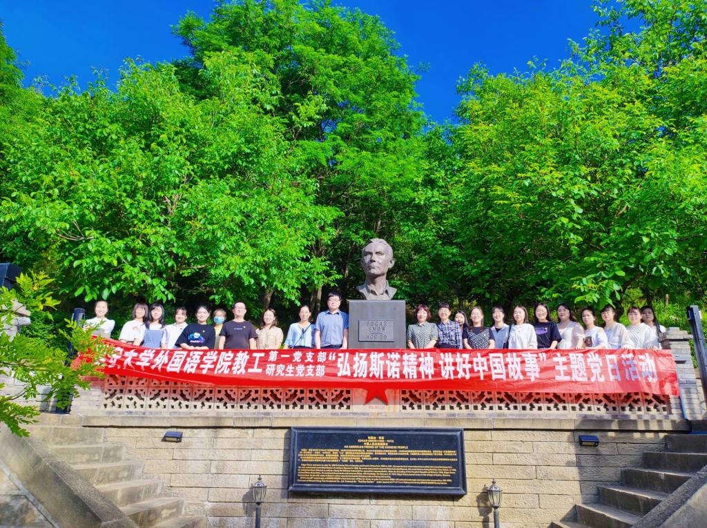 教工第一党支部、研究生党支部在延安“红星园”联合开展“弘扬斯诺精神,讲好中国故事”主题党日活动。学院党委副书记许多文、教工第一党支部书记李艳、研究生党支部书记姜家兴、辅导员郭芯萌及两个党支部成员参加了活动。活动由古晓妮、杨文华主持。