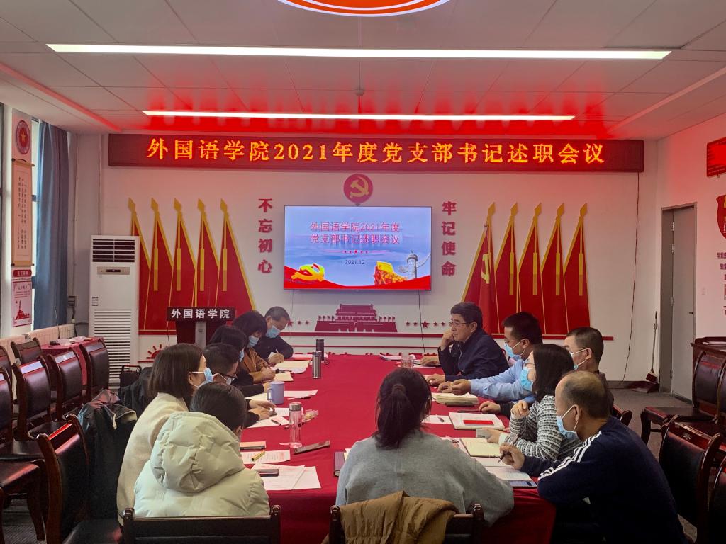 在学院党建活动室召开2021年度党支部书记述职工作会议。副校长谭虎娃、院领导班子成员、党支部书记、支委会成员、民主党派和党外人士代表参加了会议。会议由院党委书记梁艳主持。