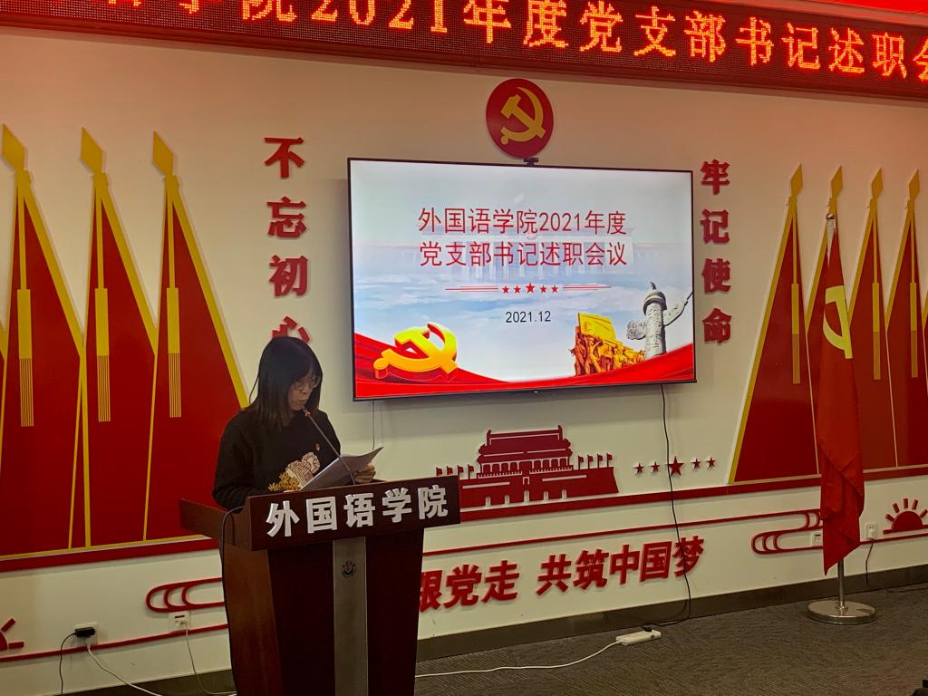 首先,梁艳宣读了《关于开展2021年度基层党建述职评议考核工作的通知》中有关党支部书记述职工作的相关精神,并结合学院实际提出了具体要求。随后,教工党支部书记李艳、高治东分别围绕本单位改革发展稳定,落实立德树人根本任务,教育管理、监督党员和组织、宣传、凝聚、师生服务员工,聚焦党员教育管理,师德师风建设、标准化规范化党支部建设和党员权利保障、存在问题及下一步计划等方面进行了述职;学生党支部书记姜家兴、徐洁分别围绕加强思想政治引领,筑牢学生理想信念根基,引导学生刻苦学习、全面发展、健康成长,聚焦党员教育管理、标准化规范化党支部建设、党员权利保障和将延安精神“一体两翼”育人体系融入党支部建设全过程、存在问题及下一步计划等方面进行了述职。接着,党外人士、学生代表、班子成员依次进行了点评,梁艳结合四个支部书记述职情况提出了建议。