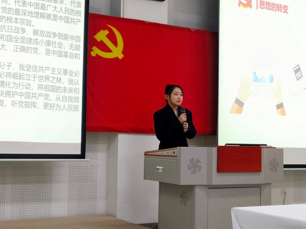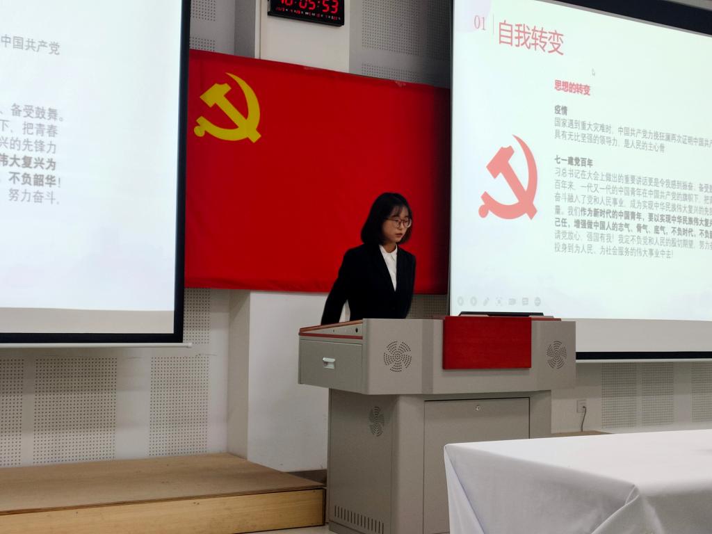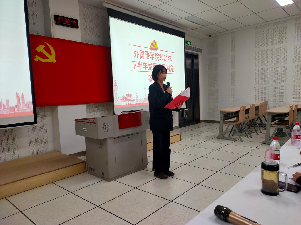 在教学楼107教室举行了2021年下半年党员发展对象答辩会。院党委书记梁艳和辅导员姜家兴、徐洁、郭芯萌担任评委。答辩会由徐书凝主持。