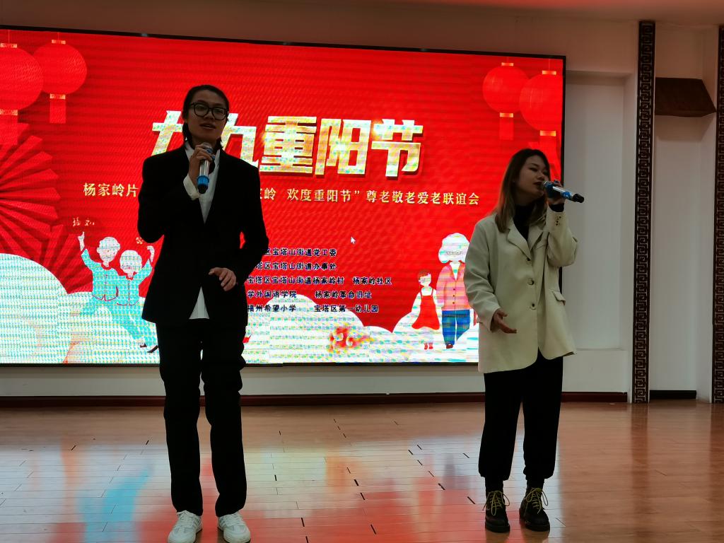 与杨家岭村、杨家岭社区等单位在杨家岭石窑宾馆1号会议室举行了“相约杨家岭、欢度重阳节”党建联谊活动。杨家岭社区和杨家岭村相关负责人、学院组织员姜家兴和杨家岭村60岁以上受邀老人及学院部分同学参加了活动。