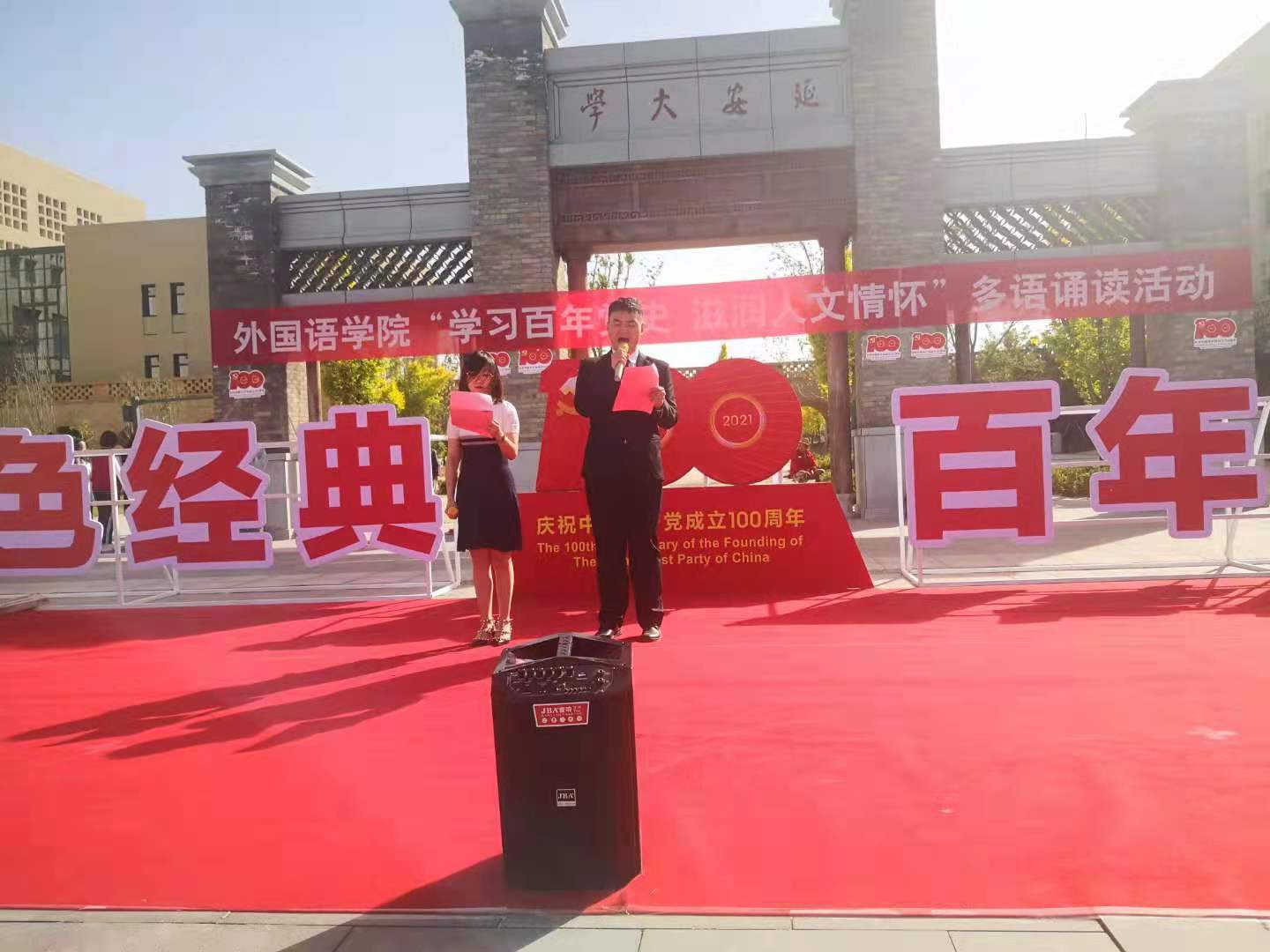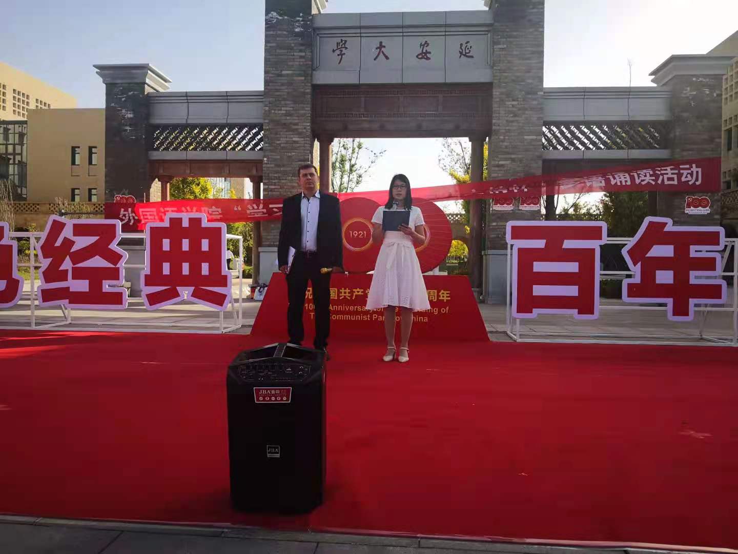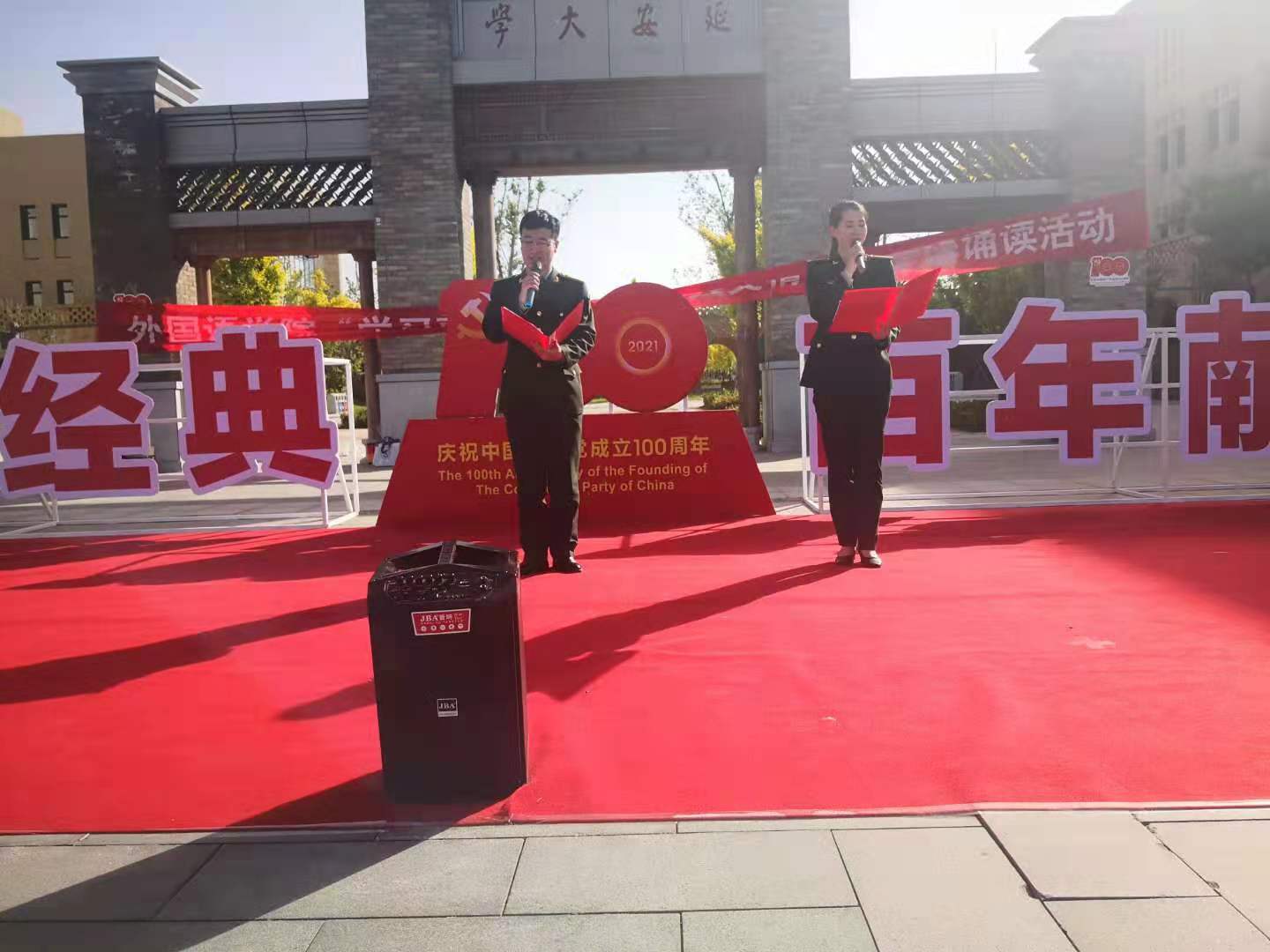 在新校区“红炉”党建文化广场举行了“学习百年党史,滋润人文情怀”多语种诵读活动。学院领导班子、杨家岭社区党总支书记冯雪林、延安北京知青博物馆宣教科主任张亮和办公室主任党政军、延安科技馆展教部部长高艳萍及相关负责人、91在线