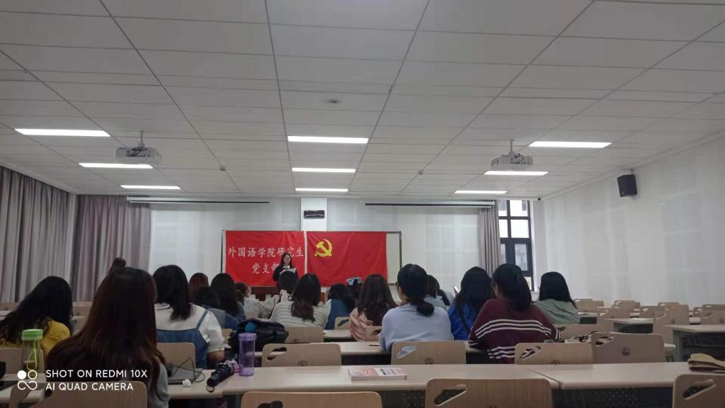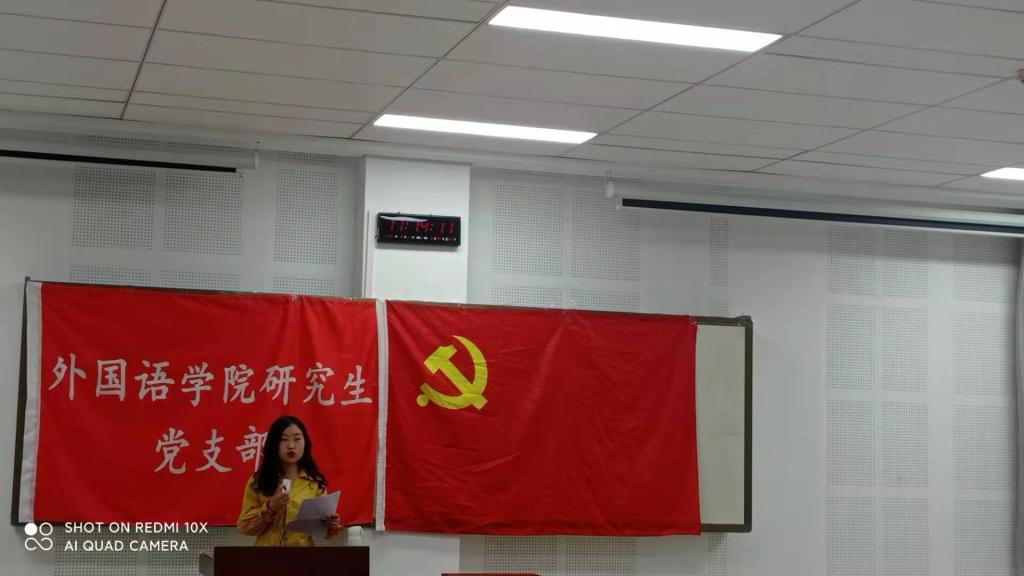 5月11日下午,研究生支部根据院党委统一部署在外语楼211教室举行了我为党史代言”之“外语讲故事”会议。支部书记姜家兴、支部全体成员及入党积极分子参加了会议。会议由宣传委员苏瑶主持。