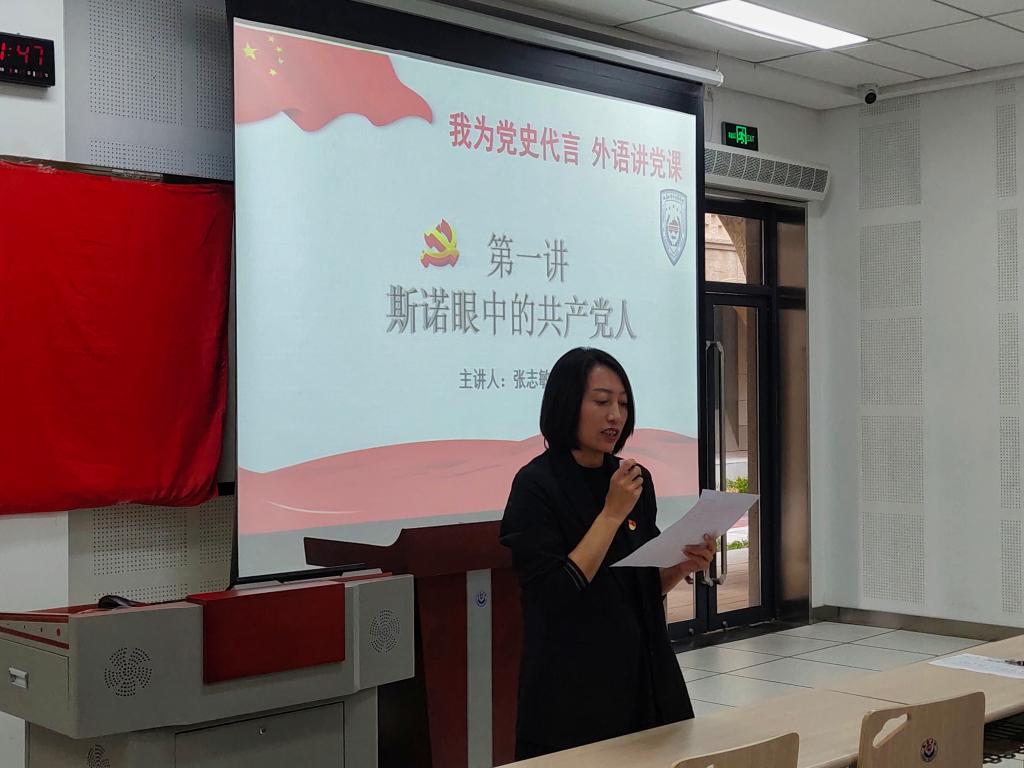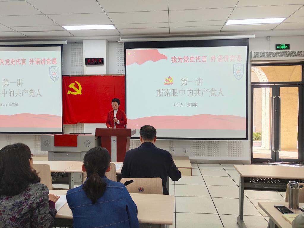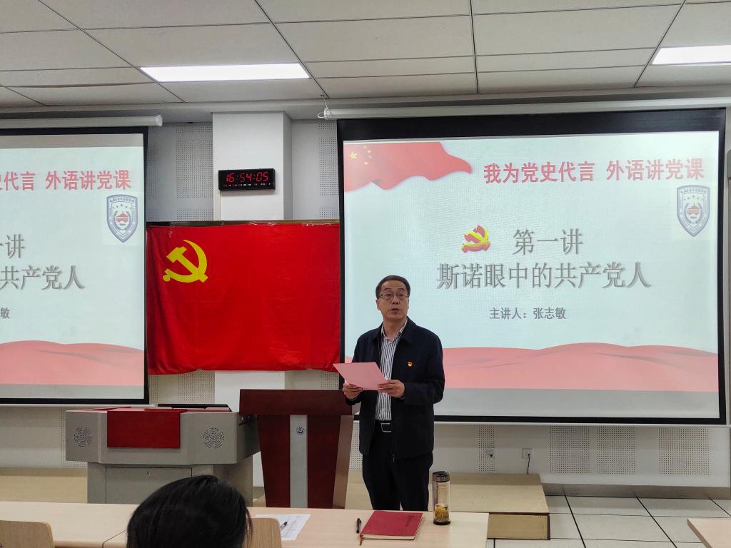 邀请张志敏教授在外语楼107教室以中英文双语的方式作了题为《斯诺眼中的共产党人》主题报告会。学院全体教职工、学生党员、入党积极分子共计200余人聆听了报告。报告会由教工第二支部书记高治东主持。